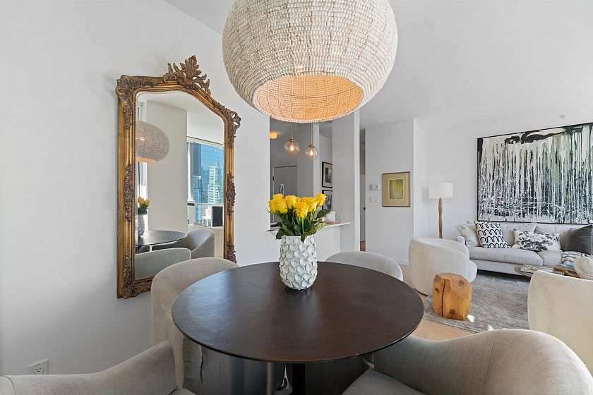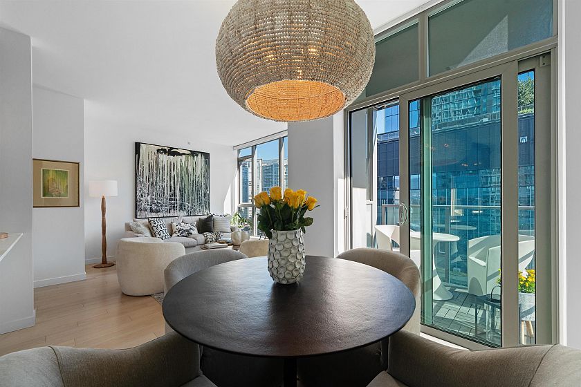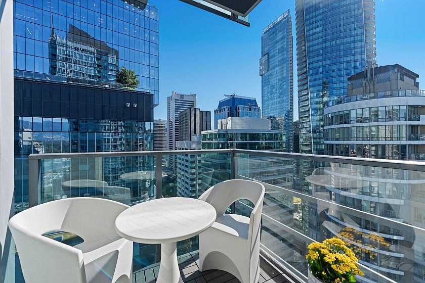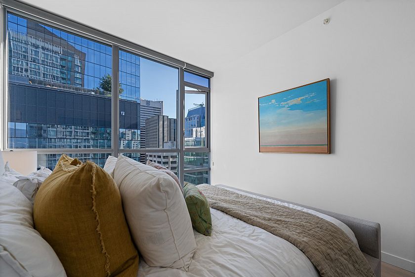 Welcome to The Melville, one of Coal Harbour's most prestigious addresses. This stunning 1 BED + DEN home boasts views of the city, mountains & ocean from floor-to-ceiling windows with 9' ceilings. Recent upgrades include quartz counters & backsplash, Blanco Silgranit sink, designer lighting, concrete fireplace, power blinds & hardwood floors. The versatile den works perfectly as a home office/junior bedroom, offering flexibility for today's lifestyle. Thoughtfully updated throughout, this home blends modem comfort with timeless style. Enjoy world-class amenities: rooftop pool & hot tub, gym, sauna, Peloton & yoga rooms, 24-hr concierge, gardens, etc! Pet-friendly (2 pets, no size restrictions). Steps to the seawall & shopping. Coal Harbour living at its finest. 1 Parking, 1 HUGE locker.