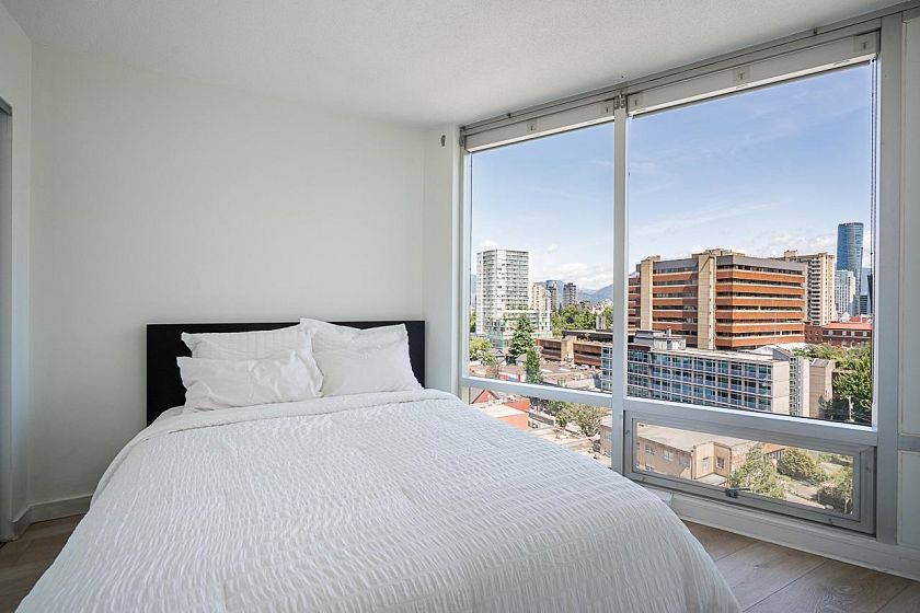 Experience elevated living at The Milano by award-winning Cressey, in Vancouver's coveted West End. This corner 1-bed + den & flex residence boasts floor-to-ceiling windows framing 280° of spectacular, unobstructed mountain views-perfect for golden sunsets. Just steps to English Bay, Sunset Beach, and Robson's finest boutiques and gourmet dining. The sophisticated layout offers refined comfort and versatility. Indulge in exclusive amenities: a private fitness studio, cinema room, and tranquil landscaped courtyard. Pets and rentals welcome.