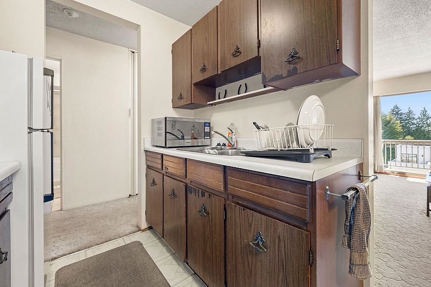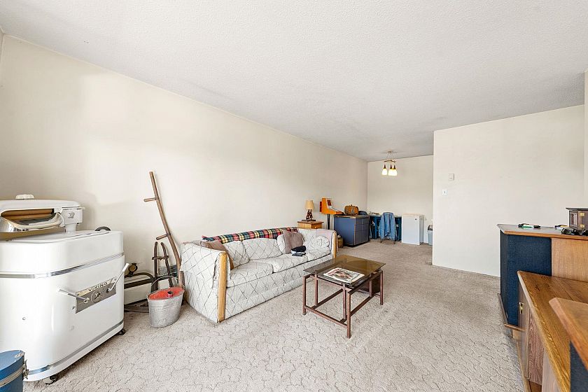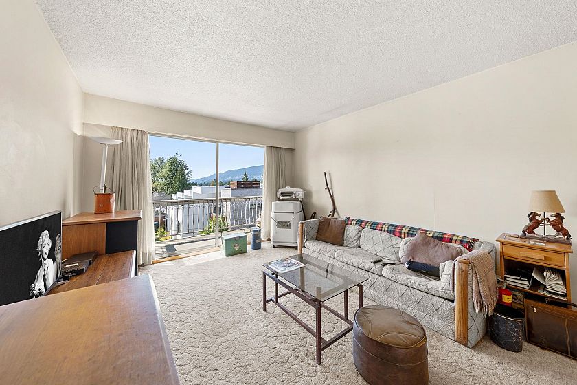 Top floor west facing view suite! This spacious home has well sized principle rooms throughout, including a pleasant living room that transitions to a private balcony with a western facing outlook to the North Shore Mountains and some City views. Enjoy lots of natural light and evening sunsets! Fantastic central location, just steps to all the amenities of Lonsdale and what will be the new state-of-the-art Harry Jerome Rec Centre. Storage and parking may be rented from the strata. Bring your reno ideas and make this one your own!