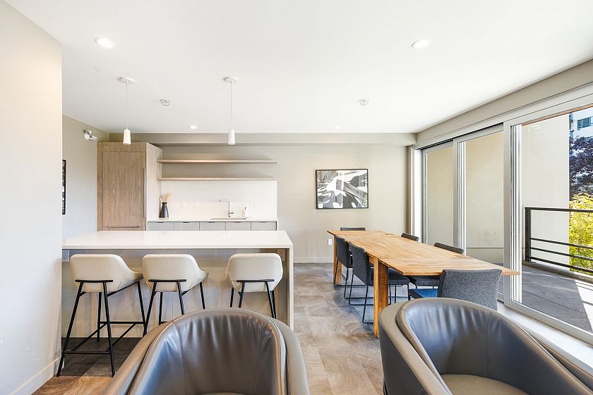 HOT LISTING! This stunning 1 Bed + Den home offers a MASSIVE 277 sq. ft wraparound patio space with PRIVATE EXTERIOR ACCESS and a BBQ HOOKUP. Featuring BRIGHT OPEN INTERIORS, WIDE-PLANK FLOORING, radiant in-floor heating, and a GOURMET KITCHEN with quartz countertops. Built with Adera's QUIET HOME™ TECHNOLOGY for superior SOUNDPROOFING and SUSTAINABILITY. Includes 1 parking space and 1 storage locker & In-Suite Laundry. Amenities include the WEST COAST CLUB, gym, dog wash, bike room, and outdoor courtyard. Steps from Whole Foods, Lagree West, Buddha-full, and Lonsdale off-leash DOG PARK in a WALKER’S PARADISE with a 94 WALK SCORE. VACANT & MOVE-IN-READY. OPEN HOUSE SAT/SUN 2-4 pm