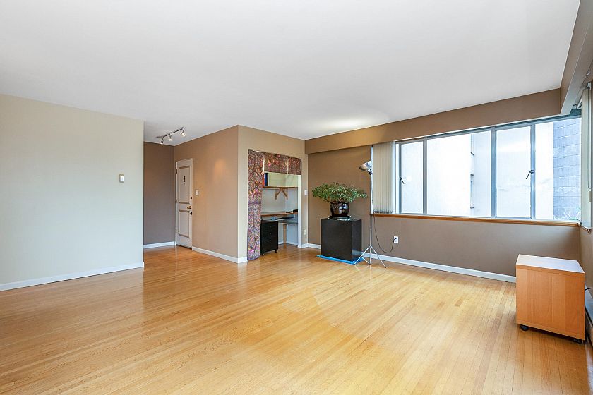 DIANNE COURT Mid-Century Modern landmark one of the best well run co-ops in the West End. Beautifully designed concrete building features oversized windows spanning the entire suite, filling the home with natural light. Spacious corner 1-bdrm with water views, solid oak hardwood floors throughout and updated over the years. Move in ready. Steps from Sunset Beach, English Bay, the Seawall, Stanley Park, and the restaurants/shops along Davie Street. 19+ adult-oriented building with no pets, no smoking, and no rentals, requiring 25–35% down. Well maintained: new roof, plumbing risers done in 2024. A half locker is included; parking via waitlist. Bike/e-scooter storage can be rented from the co-op. EV charging is available. Open House Sat Dec 6 from 1:30-2:30pm