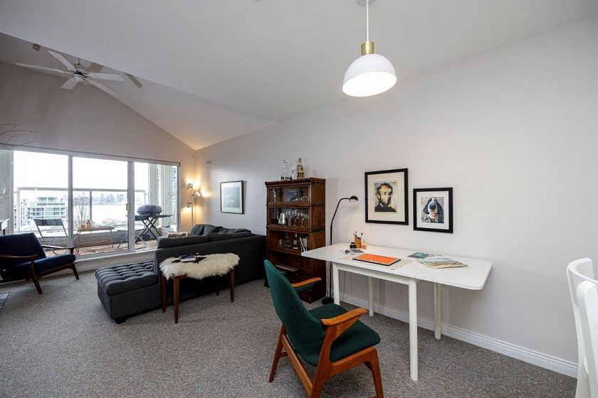 Here is a fantastic opportunity to get into the market in coveted Lower Lonsdale (aka "LoLo"). This 1 bdrm offers PENTHOUSE living with vaulted ceilings for extra volume, open kitchen, gas fireplace and a south facing view of the most beautiful city in the world. Recent upgrades include new carpet & fresh paint. Also included is a full sized in suite washer/dryer set so you can put the days of lugging clothes to a shared laundry in the basement behind. The location is incredible: 3 blocks from the North Vancouver Shipyards where you can enjoy summer nights listening to live music as well as dining in the many restaurants LoLo has to offer. What's not to love?