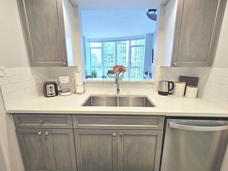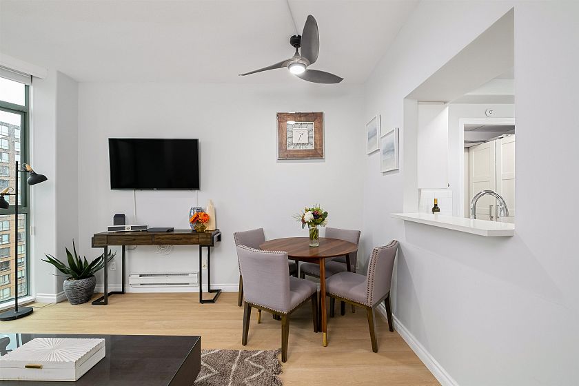 Welcome to Portofino in an amazing location and just one block from the Beach and Vancouver House in convenient Yaletown where you'll find great shops and restaurants along with walking distance to the seawall and the Aquabus to Granville Island! A very bright one bedroom with lovely views of English Bay and False Creek. Features floor to ceiling windows, in suite laundry and storage, fully applianced kitchen and generous closet space. The strata suites hotel portion is currently operated by Executive Inn as a vintage heritage park. The recent addition of the Parker Rooftop Restaurant and Bar is an additional bonus and adds to the appeal!! Live in full time or it rent out! Benefits from amenities of exercise centre!