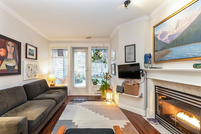 Kitsilano Gem! Welcome to Blenheim Terrace. This smartly designed, nearly open-plan home offers 578sqft of living space plus a massive 426-sqft private terrace, perfect for entertaining, outdoor dining, or creating your own potted garden oasis. This quiet, 1-bedroom suite features in-suite laundry, a gas fireplace, and laminate flooring throughout. Enjoy easy access to UBC and everything Vancouver has to offer. Just steps to McBride Park, local shops and restaurants, and a short stroll to Jericho or Kitsilano Beach. Two pets allowed, and parking and locker are included. Shared EV vehicle charger for residents. This is truly a rare opportunity. Both the home and building have been meticulously maintained.
