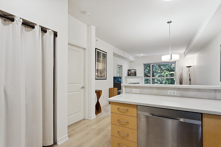 Looking for a convienient lifestyle and a smart place to invest this is it. Welcome to Edgemont Villa, a boutique 55+ building in the heart of Edgemont Village. Enjoy banking, shopping, groceries, coffee shops, the library, and public transit at your doorstep. This top-floor unit offers 742 sq. ft. of well-designed space, featuring 1 bedroom, 1 bathroom, and a spacious living area that fits full-sized furniture. The bedroom accommodates a king-sized bed, includes a walk-in closet, and opens to a private patio overlooking the greenbelt. Updates include a newer kitchen appliances, carpet, and paint. In-suite laundry, a gas fireplace, 1 parking stall, a walk-in laundry room and a storage locker complete this exceptional home.