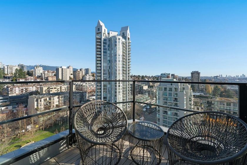 Perched on the 17th floor of The Sky, this beautifully renovated 1-bedroom, 1-Bath home is bathed in natural light, framed by floor-to-ceiling windows that captures sweeping mountain, water and city views. The airy open layout is complemented by new flooring, a thoughtfully redesigned kitchen with quartz counters, gas range, and Stainless steel appliances a serene modern bathroom. Step onto the covered balcony to soak in the scenery, or stroll minutes to the vibrant heart of Lower Lonsdale—its cafés, boutiques, Shipyards, and the Sea bus. This sought-after concrete building features updated pipes and balconies, plus the convenience of 1 parking 1 storage locker, Bike room and a great party room. Pets and rentals allowed with restrictions. Experience the vibrant life style of Lower Lonsdale