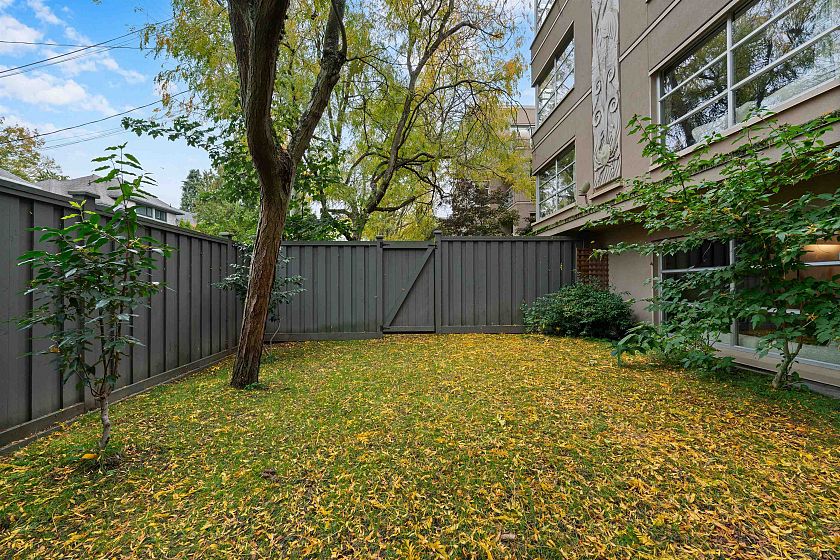 Ground-Level Garden Retreat in the Heart of Kitsilano! Fenced in yard for maximum security! Rarely available, this 1 bed + flex garden home offers DOG LOVERS the perfect setup with a private fenced yard, grassy lawn, and a sunny 590 SF patio that truly feels like your own house. Inside you’ll find granite counters, gas fireplace, updated laminate floors, an open kitchen with ample storage, bedroom with ensuite, and insuite laundry. BONUS: TWO parking stalls. On the quiet side of W 4th, this home is ideal for summer BBQs and entertaining. Steps to parks, transit, restaurants, and the beach. Proactive strata with building upgrades. 2 pets & rentals allowed (6-month min).
