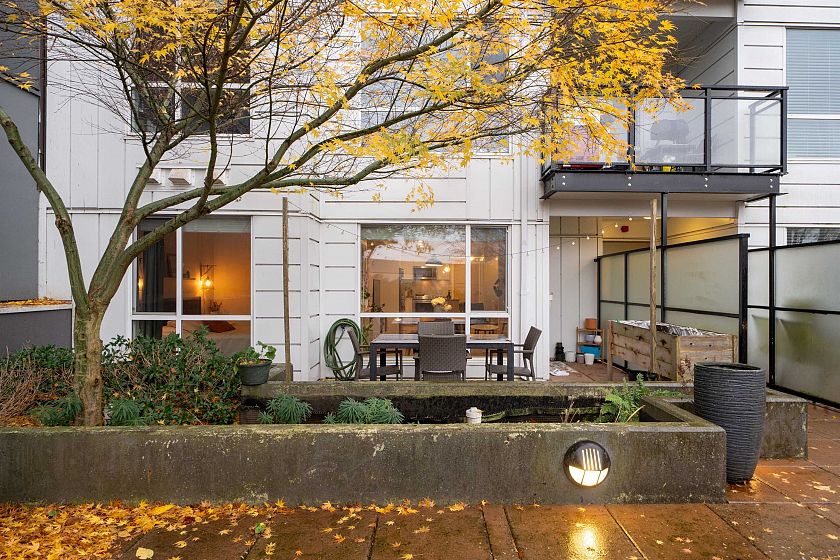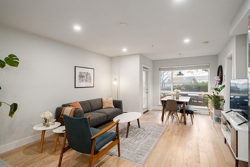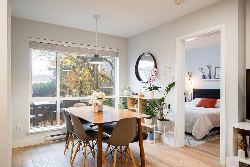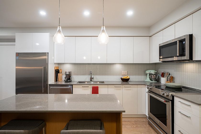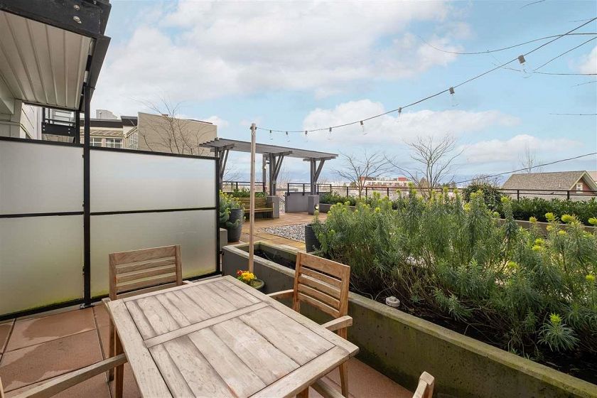 This is it! A one-of-a-kind one-bedroom and flex, with no shared walls, exceptional privacy, plus a massive terrace overlooking the city and mountains. Thoughtfully maintained and finished in engineered hardwood and tile throughout, the home features a chef’s kitchen with modern stainless steel appliances and quartz island, walk-in closet, built-in office nook, plus a versatile flex space. Located in the heart of Mount Pleasant— across the street from two grocery stores, and a 5-minute walk to the future SkyTrain - step into your urban oasis today. These homes do not come by too often! One parking and storage locker included. Open house Dec 6/7, 2–4pm.