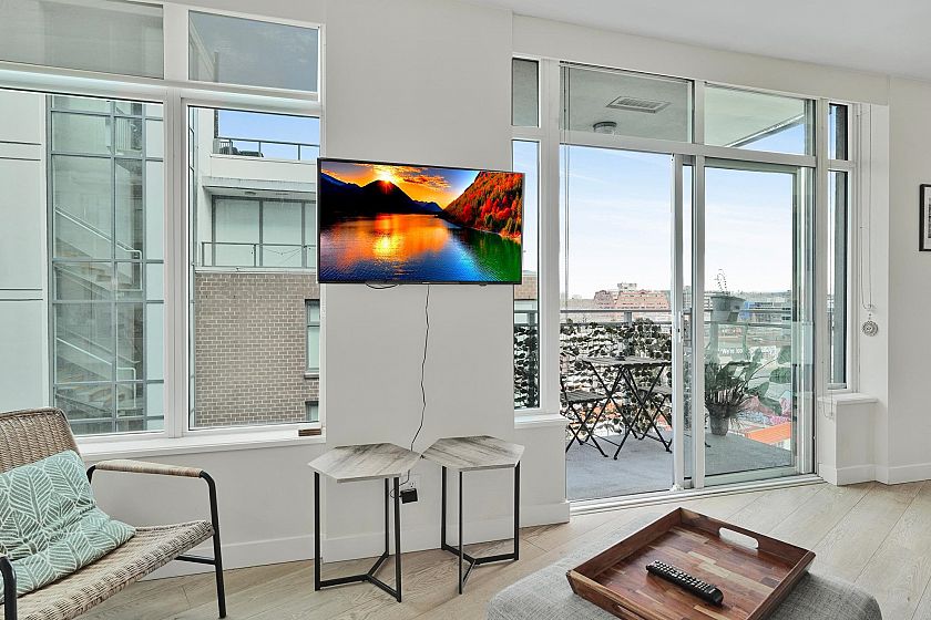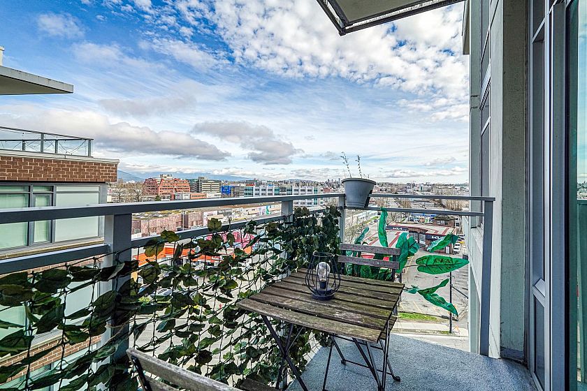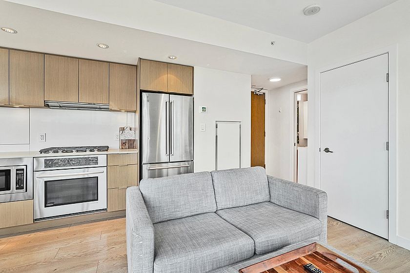 Welcome to this bright & modern 1-bedroom + den home in the sought-after Block 100 building. Enjoy stunning mountain views from your private balcony while being just steps away from everything the neighborhood has to offer. The functional den space is perfect for a home office/2nd room, offering extra versatility beyond just a one-bedroom layout. With floor-to-ceiling windows, air conditioning, and an open-concept design, this home is filled with natural light, making it a comfortable and inviting space. This home includes separate storage, underground parking & fantastic amenities, including a gym, concierge, and rooftop lounge. SHORT TERM RENTALS ALLOWED - Contact us to learn about the earning potential.