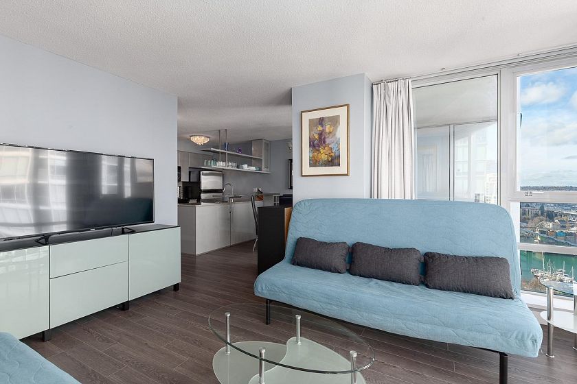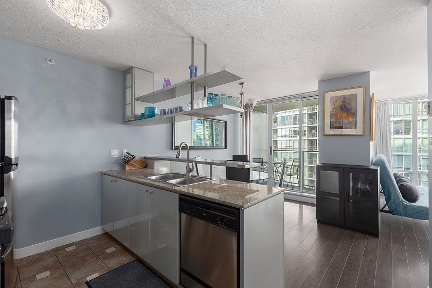 Welcome to Azura by Concord! This rarely available corner 1 bed+den+flex space sprawls over 760sqft. Located in the heart of Beach District, this home features an abundance of natural light through the floor to ceiling windows, an expansive open floorplan, kitchen flows into the dining prefect for entertaining, relax w/views of George Wainborn Park & Granville Island in your living room, den/solarium makes a great home office & a large flex room for extra storage. Bedroom w/WIC is bright and spacious w/views of David Lam Park & False Creek. Luxurious amenities at Club Viva with fitness center, pool, hot tub, steam room, sauna, squash court, party room, guest suite, and theatre. 24hr concierge & 1 parking included! Unbeatable location!