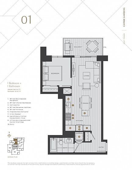 This 580 SF spacious one-bedroom home is located at Cambie Gardens, Onni Group's masterplanned community on Vancouver's westside. Lavishly finished w/ engineered HW flooring, heating & cooling system, automated lighting & sleek roller shades. A gourmet kitchen includes natural stone countertops and a 30" Sub Zero + Wolf appliance package w/ integrated refrigerator and undercounter wine fridge. A spa-inspired bathroom boasts marble countertops, Nuheat flooring & oversized mirror w/ LED lighting. Parking included.