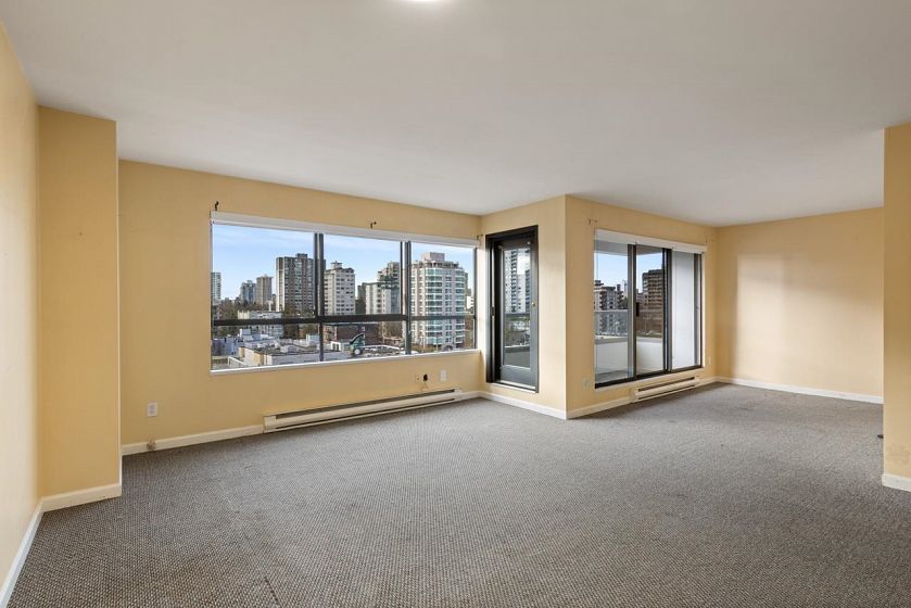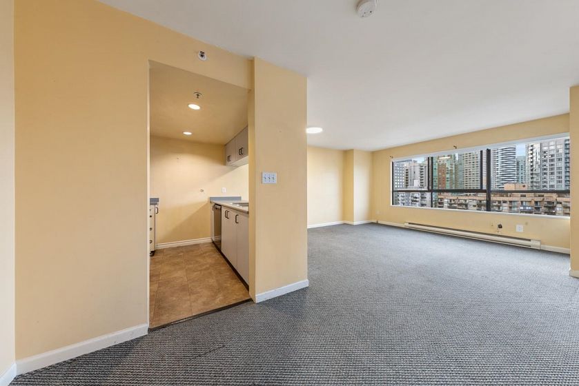 THE PERFECT LITTLE HOME RENO PROJECT - PUT YOUR ENERGY, LOVE AND DESIGN IDEAS INTO THIS ONE AND REAP THE REWARDS! THE SUITE - a true blank canvas - large open studio, easily converted into a 1 bedroom (ask your Realtor about recent sale two floors below). Unusually bright/private/open outlook with views across airspace over Robson St. In-suite laundry can be added with strata approval. Open balcony faces South East. Secure parking. THE BUILDING -THE CARLYLE - rock solid, executive high rise with multiple upgrades. Indoor pool, hot tub, steam, sauna, gym, library, meeting room + newly updated outdoor patio with outdoor kitchen & private gazebos! Steps to endless shops/restaurants. Walking distance to the Seawall, Coal Harbour, Downtown, Skytrain & Stanley Park. An amazing urban lifestyle!