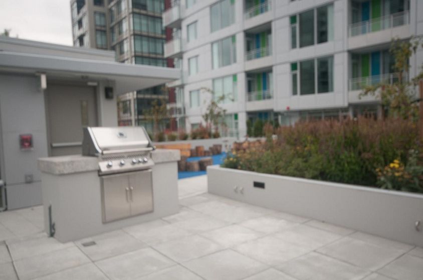 Beautifully UNFURNISHED 1-bdrm + den, 1-bath condo w/ 632 sq.ft. in the heart of Olympic Village. Open layout w/ in-suite A/C, rich hardwood flrs, & floor-to-ceiling windows for tons of natural light. Living rm opens to private balcony, perfect for coffee or evening unwind. Gourmet kitchen features sleek dark cabinetry, quartz counters, gas range, & Bosch/Fisher Paykel s/s appls. Master bdrm offers queen bed & ample closet space; den w/ built-in desk ideal for home office. Concrete bldg w/ gym, lounge & rooftop BBQ deck. Steps to seawall, Urban Fare, Craft, Terra Breads, cafés, SkyTrain. Rent Includes: Heat, hot Water, 1 storage locker and 1 secured underground parking stall. PARKING IS FOR SMALL CAR ONLY. No Pets. Also available FURNISHED $3300 3 month min. m/m after. incl internet & util