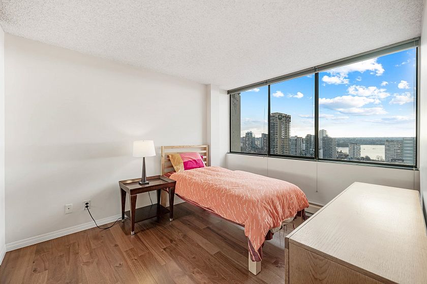 STUNNING ENGLISH BAY, STANLEY PARK & MOUNTAIN VIEWS from every window! Coveted rarely available 20th floor, southwest facing corner unit at Huntington Place with million dollar views & sunsets. Wake up to the sounds of waves washing up on the beach & birds flying through Stanley Park. This 731 sq.ft 1 bedroom & den home has been carefully maintained by the owner. Real hardwood floors installed in 2017. The dining room extends onto a private patio that serenely overlooks Lost Lagoon. Huge outdoor swimming pool with a private garden is yours to enjoy on warm summer days. Absolute dream Westend location, just steps to Denman Street, shopping, restaurants, parks, beaches & the Seawall. Large parking spot and storage locker. No Pets & Shared Laundry.
