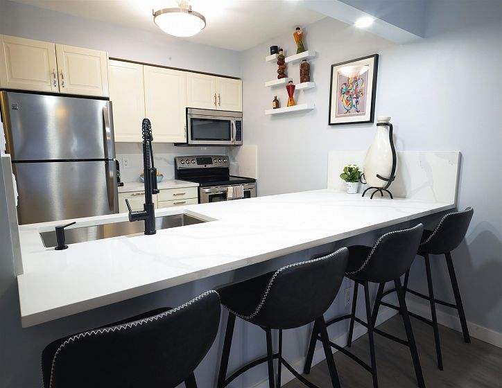Spectacular False Creek waterfront suite perfectly positioned on the Sea Wall by the Lagoons and Granville Island. Recently renovated to designer standards, this open-plan 1-bedroom plus den (easily a 2nd bedroom) offers nearly 900 sq.ft. of airy sophistication and natural light. Spacious rooms include a walk-in closet and a spa-style bath with a deep soaker tub, a heated towel rack, and radiant flooring. Step outside to walk or bike the Sea Wall, sail, or enjoy fresh catch at the Fishermen’s Wharf. A rare opportunity in a world-class location—tranquil yet steps to buses and city life. Vancouver City land lease to Dec. 2046, extendable to 2066. Pure peace in a magnificent setting. Viewings by appointment; also open Sunday 12:00 PM to 2:00 PM.