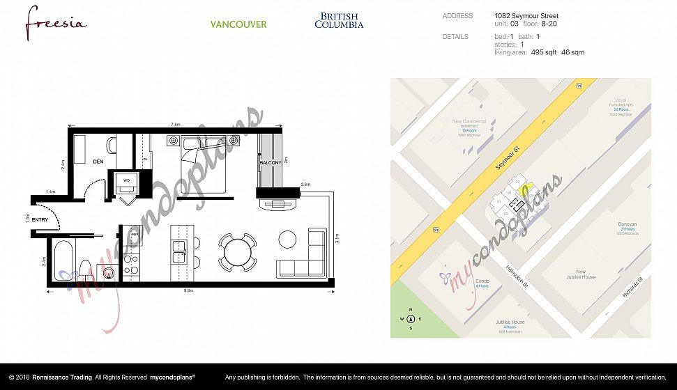 Experience urban living at its finest in this immaculate North East facing 1 Bedroom + Den at 1082 Seymour St. Located on the 12th floor, the unit boasts open city views and a bright, efficient layout. The spacious den offers exceptional versatility, perfect as a private home office or extensive storage. Features include granite countertops, electric fireplace, in-suite laundry, and a Juliet balcony. The building offers full concierge service, a gym, business room, and rooftop garden. Steps from Yaletown dining and Robson St. 1 PARKING STALL INCLUDED. Currently tenanted; please allow 48 hours for showing requests. An excellent opportunity for investors or homeowners seeking central convenience.