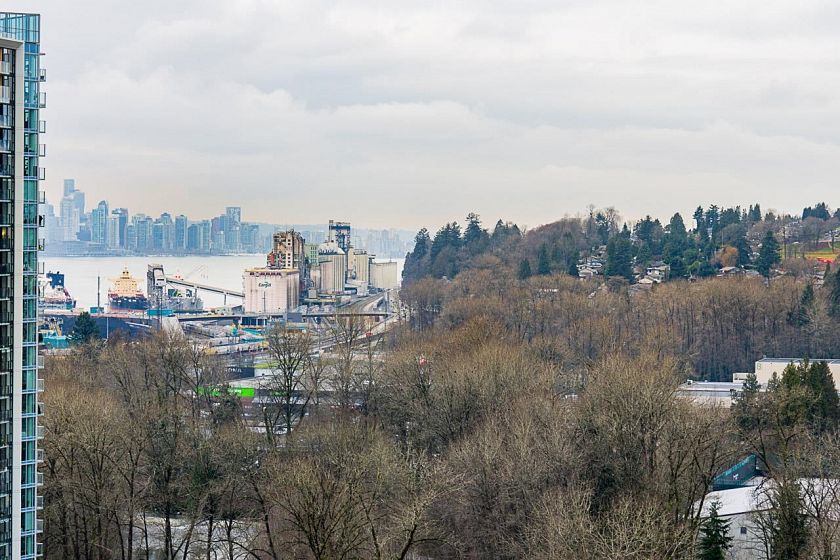 JUST REDUCED! Welcome to Beacon! Soaring on the 21st floor enjoy SOUTH-facing city and water views. This immaculate conditioned 1-BEDROOM + den/flex offers 602 sq.ft. of MODERN living with QUARTZ countertops, high-end Bosch and Fisher & Paykel s.s appliances and GAS cooktop. The endlessly BRIGHT living area opens to a PRIVATE balcony with a gas bib hookup. The versatile den can be used as an office or storage. Enjoy 3 elevators and TOP-TIER amenities, the 14,000sqft Denna Club offers a 25m indoor pool, 3,700sqft fitness room, sauna, steam room, yoga studio, and guest suite. Pet-friendly, with 1 parking spot and storage locker. Close to Lynn Creek, Seylynn Park, trails, and highways.
