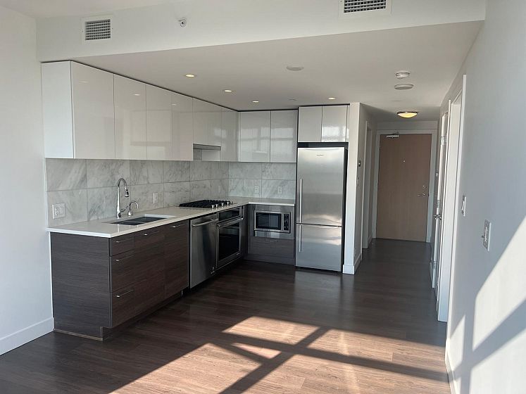 East facing Gem of a unit with unobstructed mountain views. Functional floor plan with good size den/flex room. features high end stainless steel appliances, laminate flooring, air conditioning! One town centre is the heart of River District with Starbucks, Save on foods and Td Bank right under the building. Liquor store and quality restaurants all within a few minutes walk. New bus routes makes commuting easy. Parking and storage included! Don't miss out on this fantastic home, great as a starter or investment.