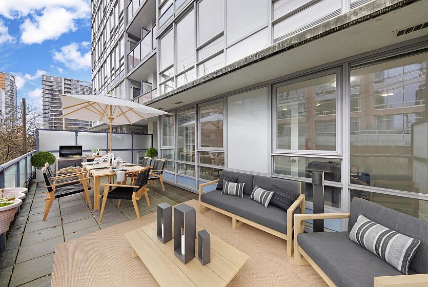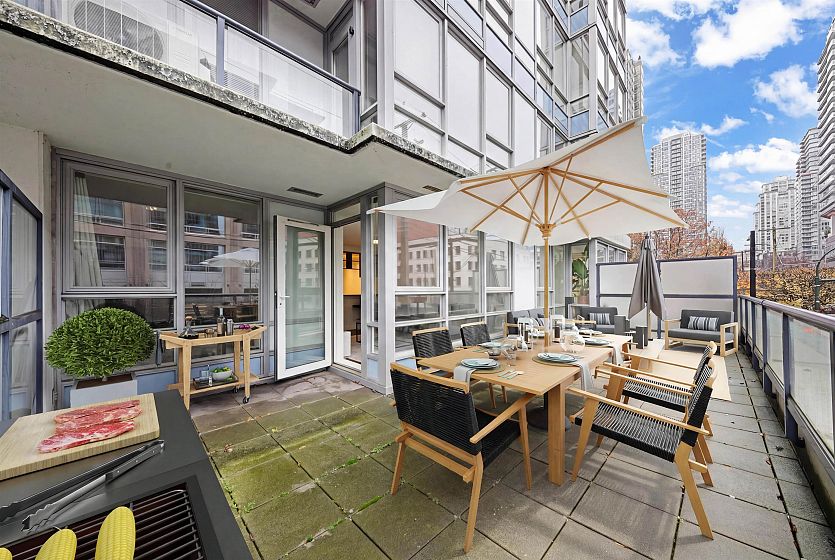 Welcome to The Max by Concord Pacific, a premier residence in the heart of vibrant Yaletown. This expansive 1-bed, 1-bath home features a functional, open layout with - a spacious den plus flex space, and ample in-suite storage designed for modern living. Step onto your oversized XL entertainer’s deck, a rare urban luxury that is perfect for hosting or relaxing. Enjoy a resort-style lifestyle with 24-hr concierge, indoor pool, hot tub, sauna, fitness centre, lounge, yoga studio, theatre, and more. Moments from the seawall, top dining, cafes, transit, and shopping. 1 parking + bike room included. Pets & rentals allowed. A standout opportunity not to be missed!
