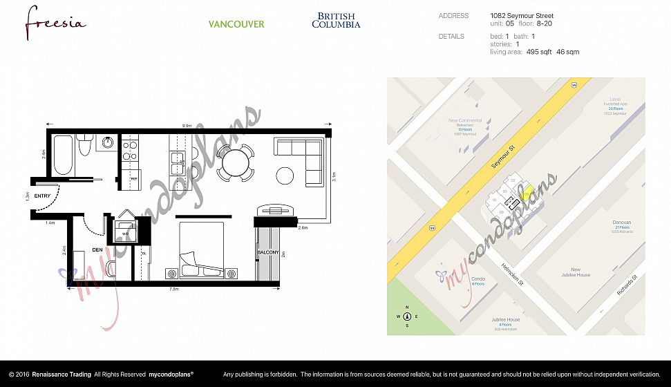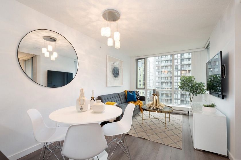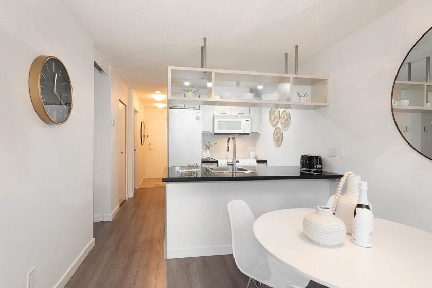 The FREESIA is just steps from Yaletown with the best restaurants, shopping, parks and entertainment. This home was lovingly maintained by the owner for 15 years and is very clean. It has a smart floor plan and a kitchen with plenty of cabinet space, a full-size stove and granite countertops. Upgrades include LG fridge, sliding glass bedroom doors, laminate floors, storage room cabinetry, and 2024 model Innova air conditioner. North-east city views from the floor to ceiling windows and balcony. One parking stall. Amenities include concierge, fitness centre, boardroom and rooftop garden. One of the best homes on the market that is vacant and ready for immediate possession! Schedule your private showing today.