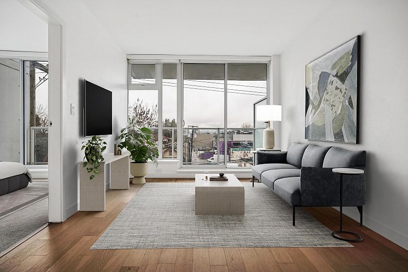 BRIGHT AND CHEERFUL 1 Bedroom at Kensington Gardens. Efficient floor plan with floor to ceiling windows, air conditioning and euro style GOURMET kitchen with gas cooktop and plenty of cabinet storage. Enjoy morning coffee on your WEST facing FULL WIDTH balcony with some mountain views. RESORT style amenities include fitness centre, OUTDOOR pool and hot tub, BBQ terrace, children's play area, media room, party room, shared EV charging & the convenience of T & T, shops and dining all at your doorstep. Conveniently located close to Nanaimo Skytrain Station, Famous Foods, Shoppers, Trout Lake and all the best local eateries. Some photos virtually staged. Includes 1 parking and 1 storage.