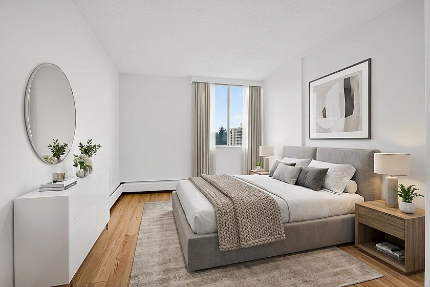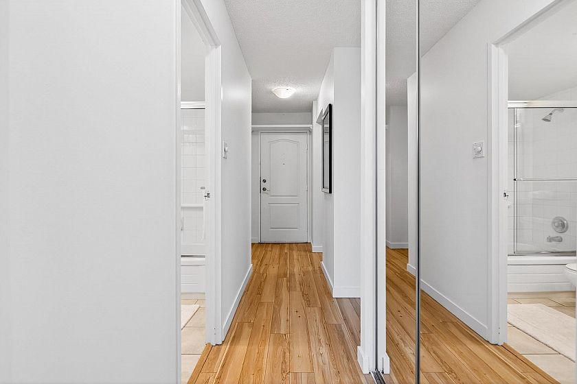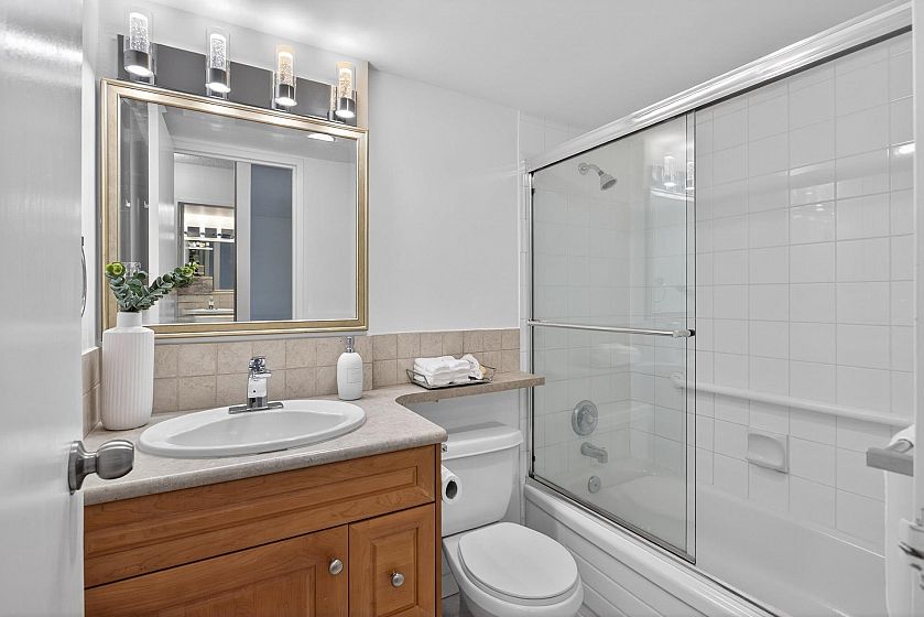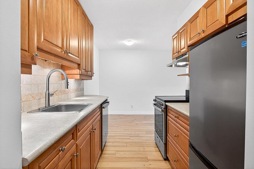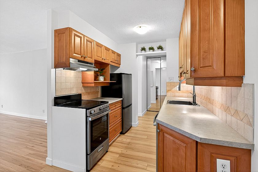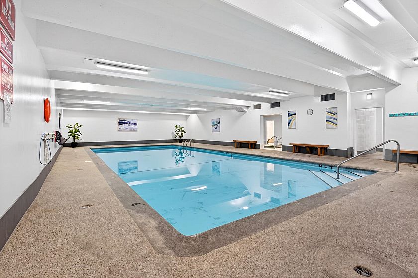 Exceptional investment opportunity at Woodcroft, North Vancouver! This large and bright, freshly painted, well-laid-out 1 bed 1 bath unit comes with upgraded flooring, stainless steel appliances, spacious bedroom, plus 1 parking and 1 storage locker. The building offers an indoor swimming pool, gym, a workshop room, 3 elevators, and a 24/7 security on-site. The upgrades include updated elevators, plumbing, roof, parking membrane. This home is ideal for the First-Time buyer or Investor. Enjoy North Shore living at its best! Easy drive to Downtown, Park Royal, Capilano mall. Call to view! Open house Saturday, February 7th, 2 to 4 pm.