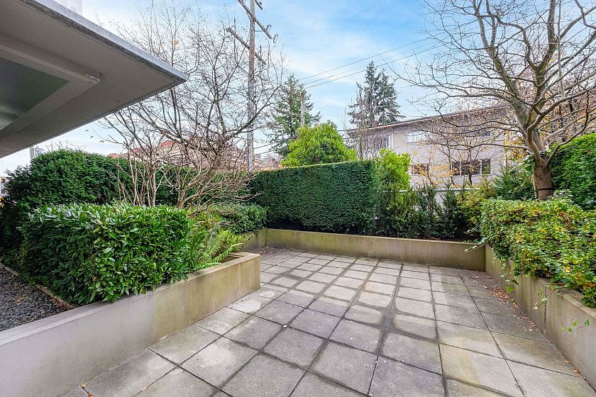 Experience elevated city living in this stunning 1-bedroom residence, boasting a rare 291 sq.ft. private south-facing patio – your own serene retreat in the heart of Fairview. Perfect for sophisticated entertaining or tranquil mornings, this sun-drenched outdoor space is unmatched. Inside, enjoy brand new floors and an open, well-proportioned layout with seamless indoor-outdoor flow, complemented by one secure parking stall. Located along vibrant West Broadway, you're steps from boutique shops, fine dining, cafes, and the upcoming SkyTrain station. Ready for immediate possession, this home offers an exceptional blend of privacy, convenience, and style in one of Vancouver's most sought-after neighbourhoods.