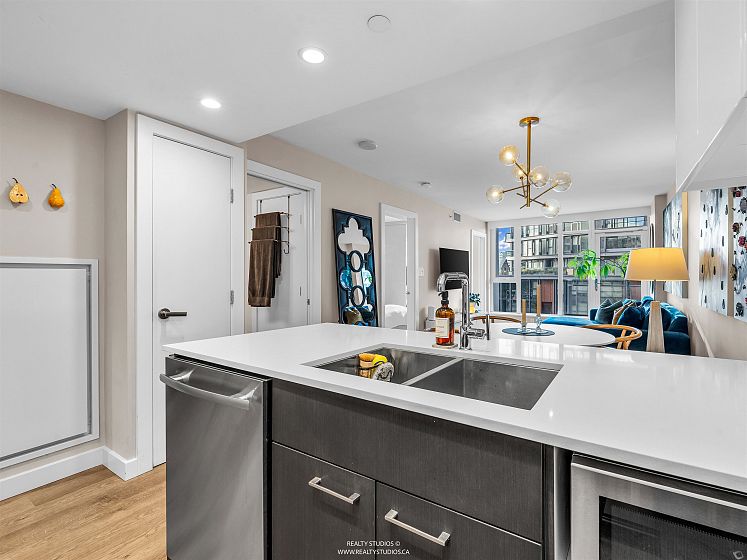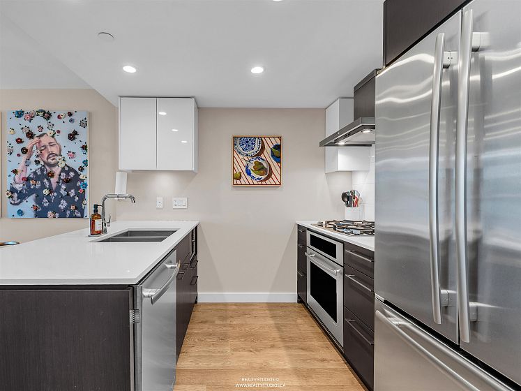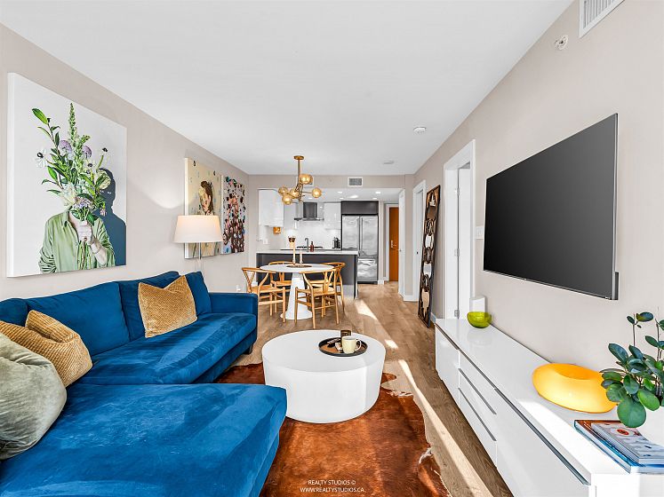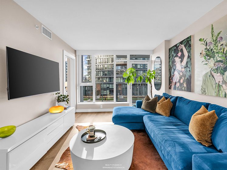 Welcome to Central by ONNI! This bright and well-designed 1-bedroom, 1-bath home boasts fabulous city and mountain views and features a gourmet kitchen with stainless steel appliances, gas range, and quartz countertops. Thoughtfully laid out with air conditioning, a den, and a versatile solarium/flex space, this residence offers both comfort and functionality. Ideally located just steps from the Seawall, SkyTrain, Olympic Village, parks, and an excellent selection of restaurants and shops. Enjoy outstanding amenities including a fully equipped gym, rooftop garden and playground, theatre room, sauna, and concierge service. Includes one parking stall and one storage locker. An excellent opportunity for first-time buyers or investors alike!