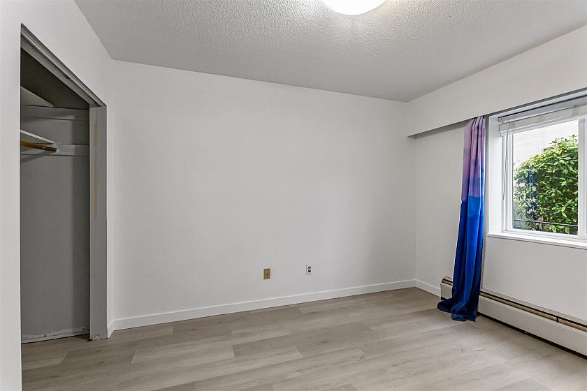 Beautifully renovated ground-level Kitsilano condo featuring new vinyl plank flooring, fresh paint throughout, and an updated kitchen and bathroom. The bathroom is enhanced with in-floor radiant heating for year-round comfort. The modern kitchen includes stainless steel appliances, a dishwasher, and an extra-large refrigerator. The spacious primary bedroom comfortably fits a king-size bed. Unbeatable Kitsilano lifestyle just 3 blocks from Kits Beach, with bus stops, shops, cafés, and restaurants steps away. Quick commute to Downtown Vancouver or UBC while coming home to a quiet, residential street. Includes 1 parking stall and 1 storage locker. Residents also enjoy a common rooftop patio. Well-maintained, pet-friendly building with no upcoming special levies. Rental and pets welcome!