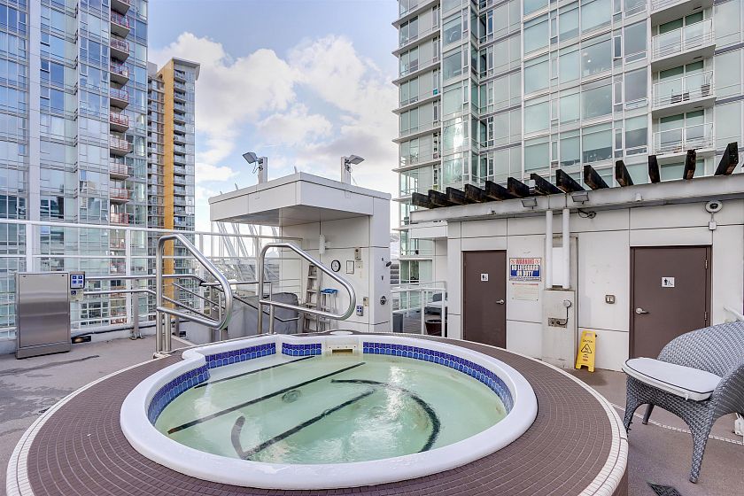 Discover downtown living at its finest in this exceptional corner 1-bedroom + den sub-Penthouse. Enjoy expansive floor-to-ceiling windows showcasing stunning city vistas & partial water/mountain views. Designed by architect James K.M. Cheng, this residence reflects modern West Coast style with an airy open-concept layout, 9' ceilings, new WR vanity, new W/D, a sleek kitchen featuring new surfacing on cabinetry & recently painted throughout. Built by Concord Pacific, this concrete tower offers resort-style amenities at the Ozone Club: 80-ft indoor pool, hot tub, fitness centre, sauna, bowling alley, BBQ area, and 24-hour concierge. Steps from Rogers Arena and BC Place, the seawall, top restaurants, chic cafés, & the SkyTrain, this location puts the best of the city at your door.