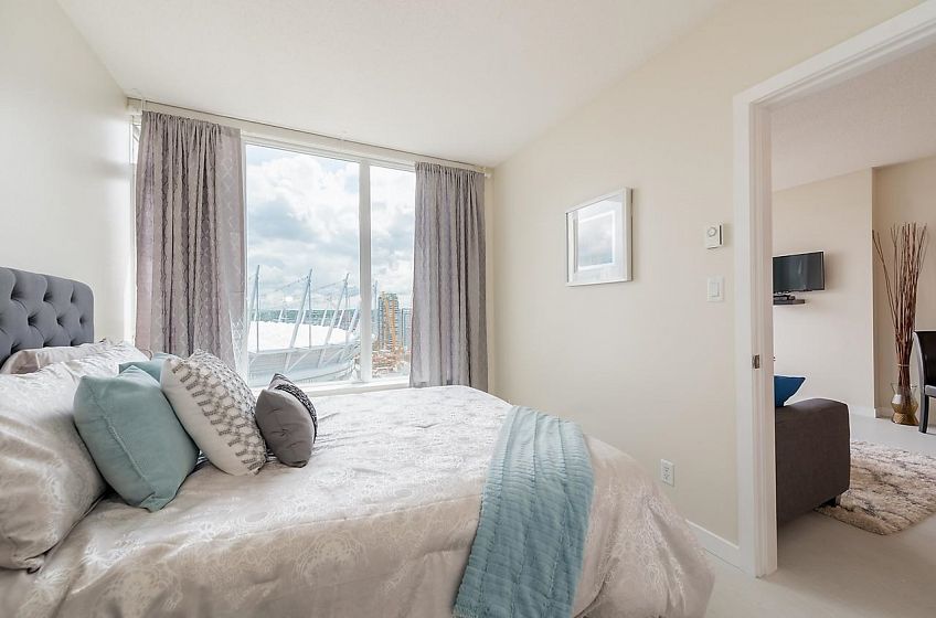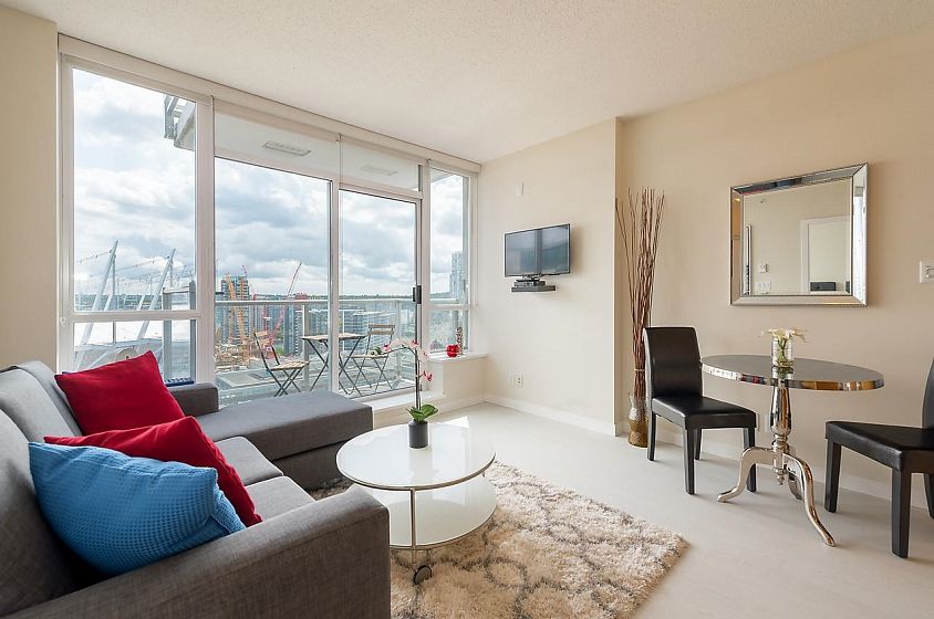 Welcome to Raffles on Robson! Bright 1-bedroom/1 bathroom, in a beautifully maintained landmark 2008 concrete tower at Robson & Cambie. The well laid out suite features a great "no wasted space" layout, south facing balcony with peekaboo views of False Creek. The quality interior finishes feature laminate flooring, shaker-style cabinetry, stone counters, Miele and Liebherr appliances, newer washer and dryer and lots more. Concierge + amenities: full-fitness centre, hot tub, media room, BBQ deck, bike storage, yoga/play areas. Walk Score 99 and SkyTrain minutes away. Steps to BC Place, Rogers Arena, the Seawall, Robson Street and the iconic Vancouver Public Library. Restaurants, cafés, and shops, some of the very best Vancouver has to offer, all right outside your front door.