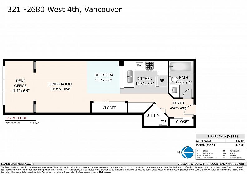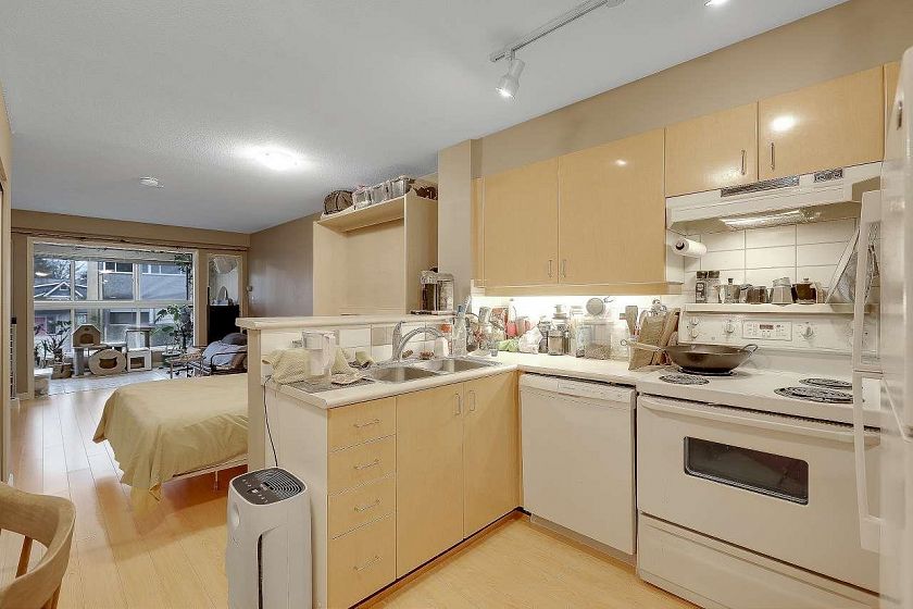 STUDIO with a DEN (that could be a junior Bedroom). WOW value! BC Assess $510,400. Good building! Star of Kitsilano, sought-after building in the heart of Kits. An incredible 97 walk score! This well-maintained studio offers a smart, - ideal for first-time buyers, students, or investors. Features include a spacious kitchen with breakfast island, laminate flooring, in-suite laundry and a balcony. Building re-piping completed in 2022. Amenities include bike storage and an incredible common rooftop deck with panoramic views, perfect for entertaining. Unbeatable location just steps to groceries, restaurants, shops, Kits Beach, and transit, 10-minute drive to UBC. Parking included. 1 dog or 3 cats. Don’t miss this opportunity to enjoy the Kitsilano lifestyle.