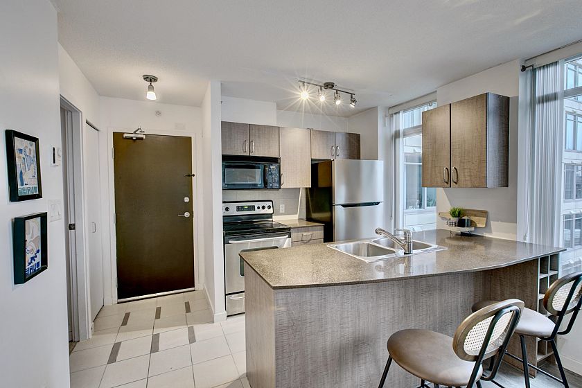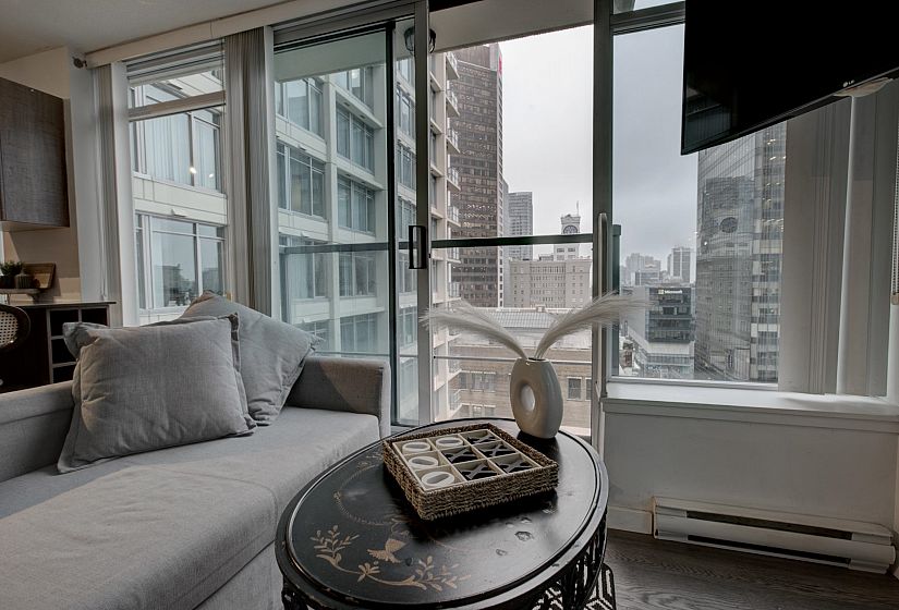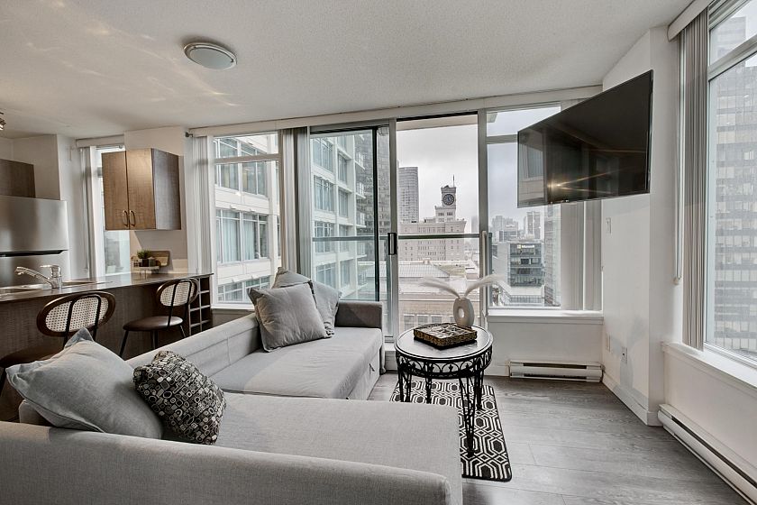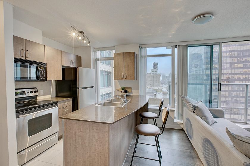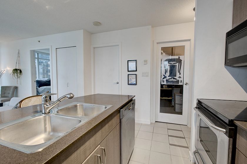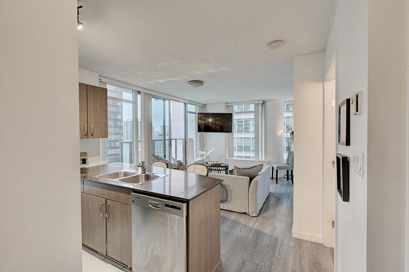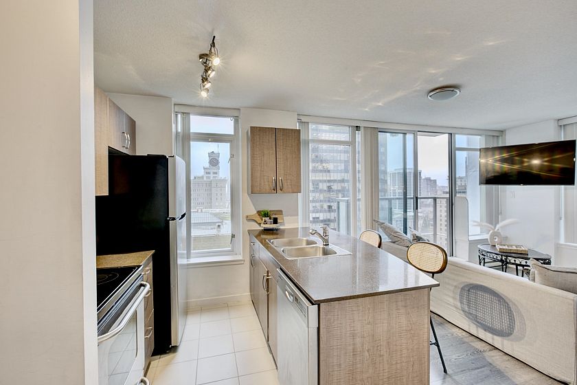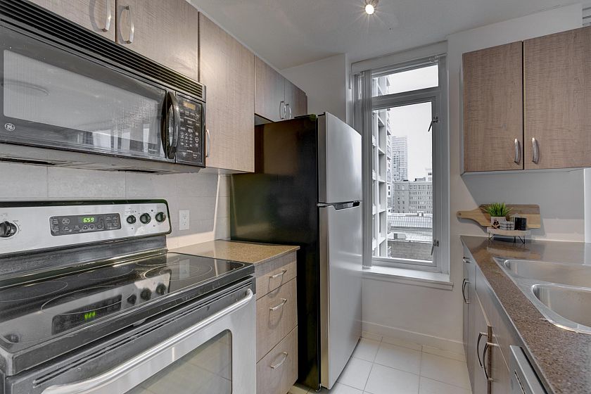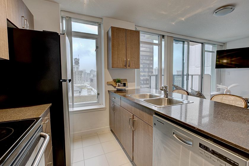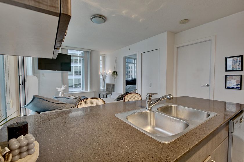 This beautiful one-bedroom apartment features an open-concept living area filled with abundant natural light and is maintained in immaculate condition. Floor-to-ceiling windows provide a bright, private exposure and enhance the spacious feel of the home. The kitchen is equipped with stainless steel appliances, granite countertops, and ample storage space. As part of The Hudson building, residents enjoy direct private access to the Granville SkyTrain Station, along with premium amenities including a concierge and fully equipped fitness center. Located int he heart of downtown, you couldn't ask for a more central setting - shops, restaurants, bars, and entertainment venues are right at your doorstep.Call your realtor today to book a showing! Open house Sat Jan 10 and Sun Jan 11 2-4pm