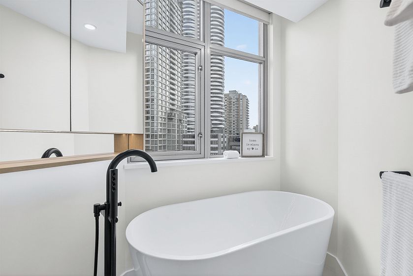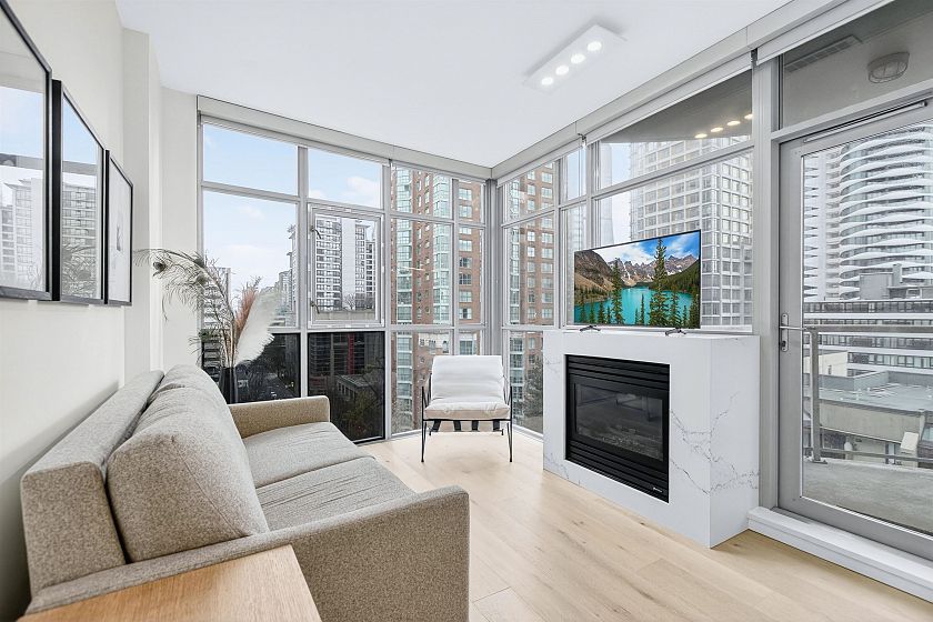 LIVE IN STYLE AT THE STERLING! Steps away from the vibrance of downtown and meticulously updated, this 1 bed + den, 1 bath home combines modern luxury and a sought after location, throughout 657 sqft of thoughtfully designed living space. This sophisticated and elegant renovation must be seen to appreciate with no expense spared! The kitchen is an entertainer's dream featuring a deluxe Miele Integrated appliance package including a 3 zone, 108 bottle wine fridge and a built-in range. Enjoy your 4 piece spa-like bathroom, including a stunning soaker tub; a very rare find in this floor plan! Other features include engineered hardwood flooring, premium modern finishings, custom fireplace surround, lofty ceilings & floor-to-ceiling windows that fill the space with natural light and city views.