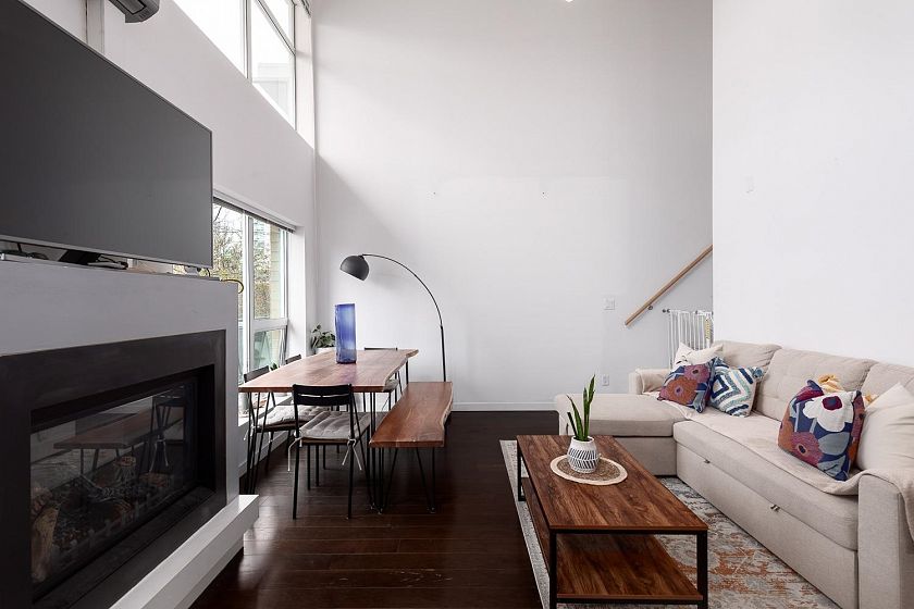 Elevated penthouse loft living at Alina, a concrete boutique building in the heart of vibrant Lonsdale. This top-floor 1 bed, 1.5 bath home offers soaring ceilings and is flooded with natural light. The open yet functional layout includes a dedicated dining space, in-suite laundry and generous storage. Enjoy year-round comfort with air conditioning, a cozy gas fireplace, complete with mountain and partial water views, and the rare luxury of two private outdoor spaces. Parking and a storage locker are included. Steps to Whole Foods, acclaimed restaurants, shops, cafes and excellent transit. A standout penthouse in one of North Vancouver’s most walkable and dynamic communities. Open House Saturday Feb 7th, 12-2pm & Sunday Feb 8th 1-3pm