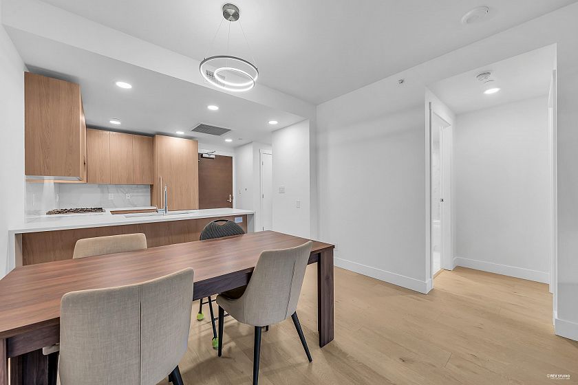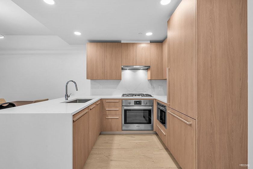 Welcome to Residences by BOSA Development, ideally located in Lynn Valley. This solid concrete building is nestled within Lynn Valley Mall, offering unmatched convenience with Save-On-Foods, shopping, and a variety of restaurants just steps away. The modern kitchen features high-end Bosch appliances, quartz countertops, and a gas cooktop. A spacious balcony provides the perfect outdoor living space with stunning mountain views. Enjoy the comfort of centrally controlled heating and cooling, all managed from within your unit. The asking price includes all furnishings, such as a queen bed, dining table, two TVs and everything currently in the home. Residents have access to exceptional amenities, including a fully equipped gym, sauna, yoga studio, screening room, games room and a social lounge