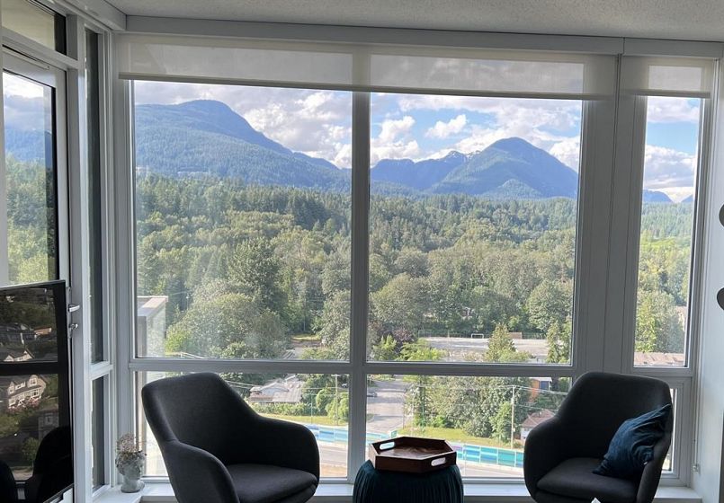 Experience North Shore living at Beacon in Seylynn Village! This 1-bedroom home features a modern kitchen with island & stainless steel appliances, bright living area with floor-to-ceiling windows and mountain views, a peaceful bedroom with walk-in closet, spa-style bathroom, in-suite laundry, and covered balcony with gas BBQ hookup. Includes parking, storage & bike locker, A/C, and access to luxurious amenities: indoor pool, hot tub, sauna, steam room, fitness centre, party room & guest suite. Steps to shops, trails, and nature, minutes to downtown Vancouver!