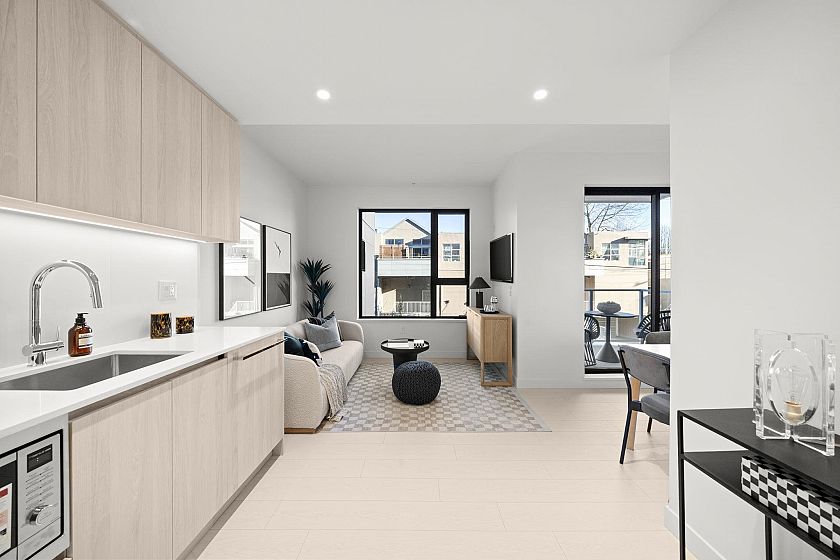 Experience the heart of the city at the corner of 33rd & Quebec. BAILEY is steps from centre field & surrounded by the best of Vancouver living. This is your opportunity to own a 1-bedroom plus flex, designed for sustainability & comfort, achieving Step 4 Code standards. Inside, enjoy high-end Fulgor Milano integrated appliances, stylish laminate flooring throughout, & expansive 9-foot ceilings. For year-round comfort, each home features a VRF heating & cooling system, HRV for enhanced air quality, and triple-glazed windows. Added conveniences include shared bicycle storage room, e-bike charging, & a dedicated dog wash station. Nestled among QE, Riley, and Hillcrest Parks, & just a short walk to Main Street’s local shops. 1 parking included. MOVE IN NOW! OPEN HOUSE: SAT & SUN, 1-4 PM