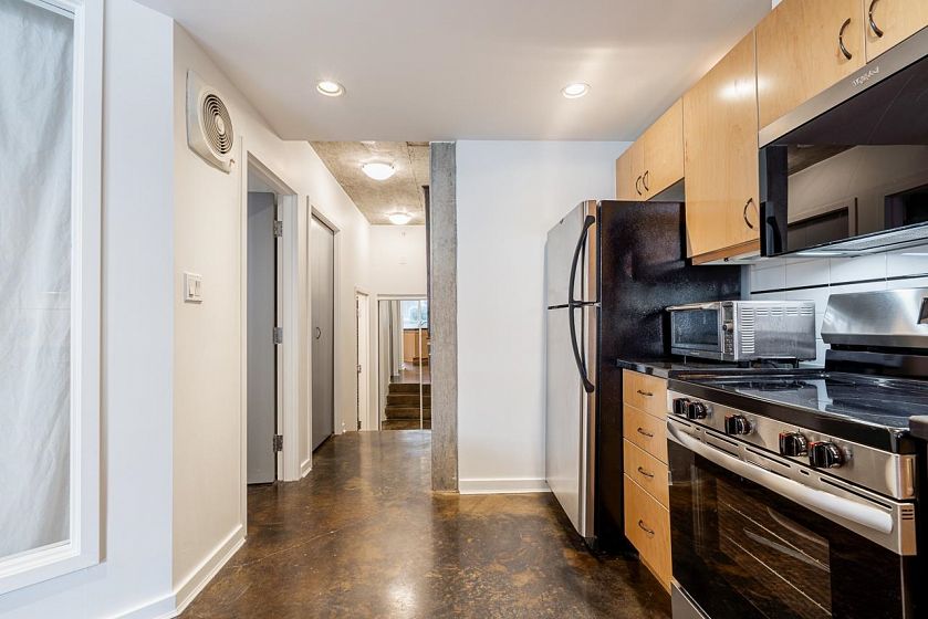 The Left Bank. This rarely offered 1 bedroom townhouse plan showcases an industrial look with a focus on polished & raw concrete, clean lines, & an abundance of natural light. Walk out your private entrance on the quiet side of the building, steps away from vibrant Chinatown & minutes from the heart of downtown and the seawall. Amazing restaurants, night life & transit are all around. The unit has dual entrances, an efficient layout with distinct dining & lounge spaces, a linear kitchen with angled peninsula, perfect for entertaining or working from home + large in-suite storage room for all of your gear. 1 parking included & 2 pets allowed. Watch the neighborhood grow & thrive as the new St.Paul's Hospital + adjacent, architecturally stunning Nexus office & retail complex near completion.
