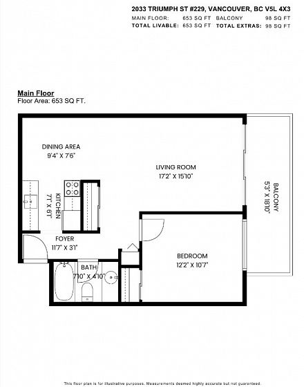 Welcome to your urban oasis in the heart of East Vancouver! This beautifully maintained 1-bedroom, 1-bathroom residence offers 653 square feet of thoughtfully designed living space, perfect for modern city living. Enjoy a generous layout with excellent natural light throughout, a spacious bedroom with ample closet space, and a private balcony—ideal for morning coffee or unwinding after a long day. This rare find includes both 1 parking stall and 1 storage locker. Situated in one of Vancouver's most vibrant neighborhoods, you'll enjoy immediate access to breweries, artisan cafes, boutique shops, and beautiful parks, with excellent transit connections and a quick commute to downtown. Perfect for first-time homebuyers or savvy investors seeking a solid rental opportunity.