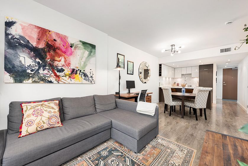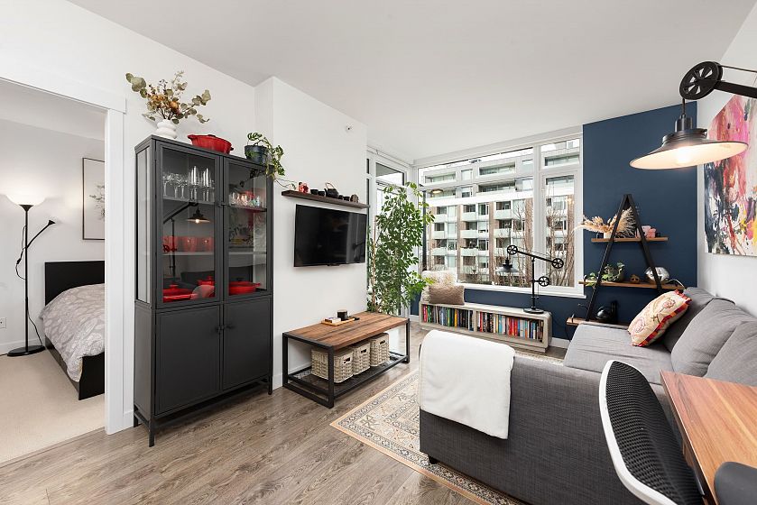 Welcome to Lido by Bosa Properties, where modern luxury meets effortless living in Olympic Village. This spacious 1-bedroom home at Unit 303 features a welcoming foyer leading into a bright, open-concept living, dining, and kitchen area. The sleek kitchen is appointed with integrated high-end appliances, quartz countertops, and a Carrara marble backsplash. Enjoy a generously sized bedroom and bathroom, plus three bonus features: a versatile flex room, private balcony, and heating and air conditioning throughout. Lido offers resort-style amenities including concierge services, EV Chargers, fitness centre, and heated outdoor pool. Steps to top restaurants, cafés, groceries, and the iconic seawall—this is Olympic Village living at its finest.
