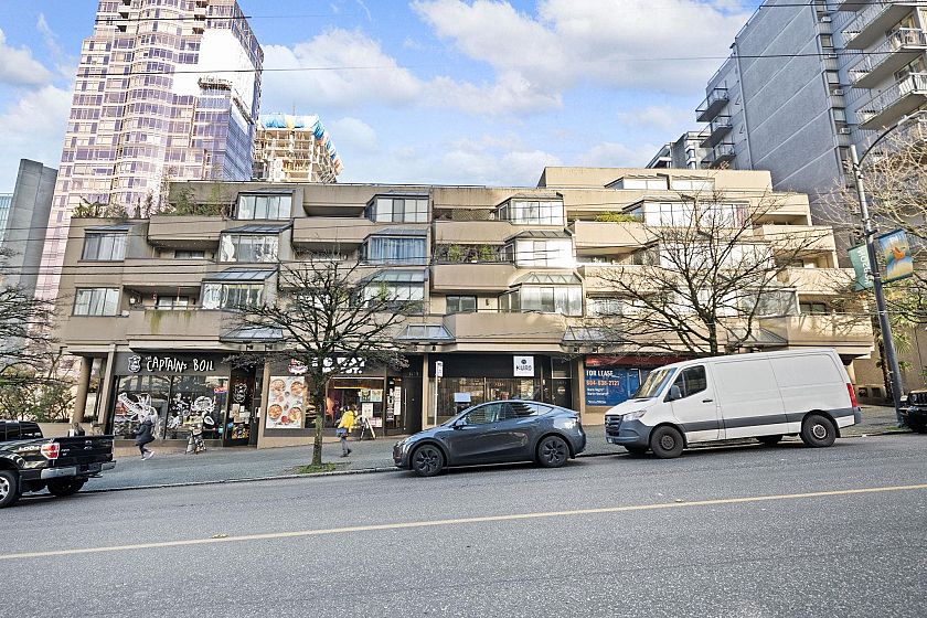 Great location right on Robson St!! Just steps to whatever your heart desires. Units just do not pop up in this building often! Rare offering! Bright corner unit with some updates, open concept plan with no wasted space. Laminate floors with tile in bathroom and kitchen. 5 Appliances + a garburator with insuite laundry. South facing balcony with planters and loads of room for BBQ and entertaining. Huge rooftop deck and party room to add to the entertaining delight. Located on famous Robson Street, with restaurants, shops and Whole foods just down the street. Lost Lagoon, Stanley Park, English Bay and Downtown are within a couple minutes walk. Well maintained low rise building with a real community feel. Come see for yourself!