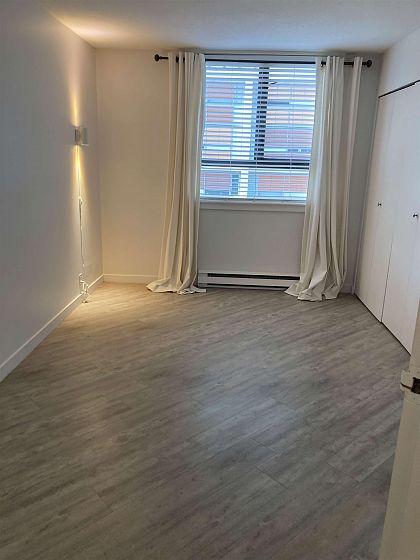 Downtown, centrally located closed to Howe Street/Drake Street next to Granville Bridge. Walk to the Beaches & ferry to Granville Island Market. Renovated kitchen & Bathroom, laminated flooring with large covered balcony. Walk to work in Downtown offices. Recreations & shopping close by. In-suite storage + parking rental at $70/m.