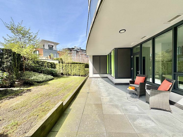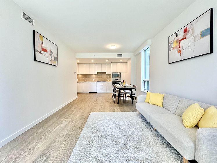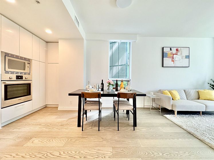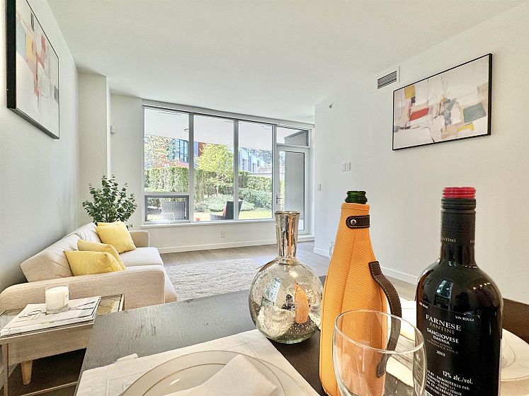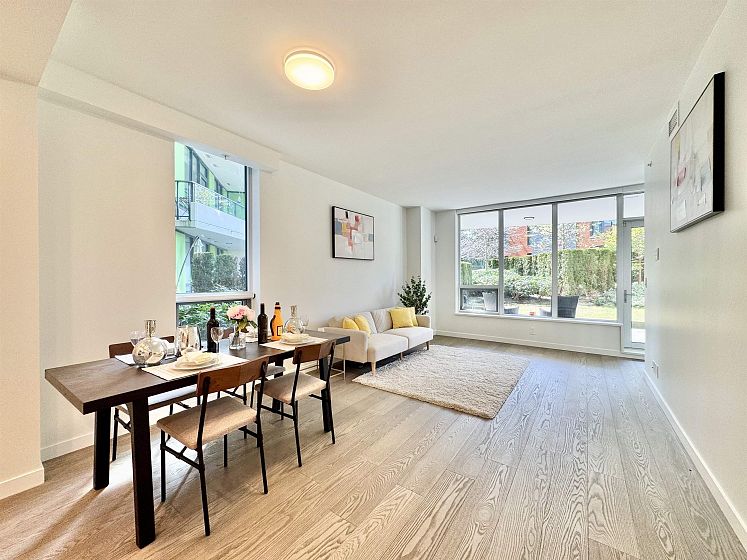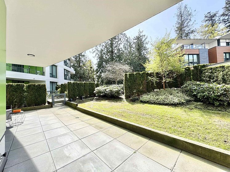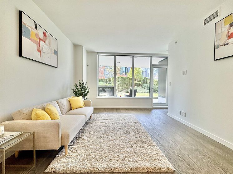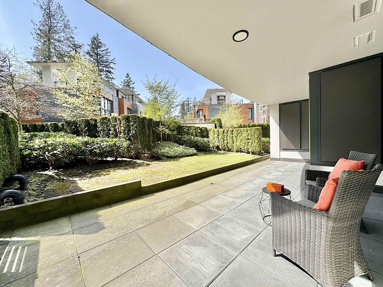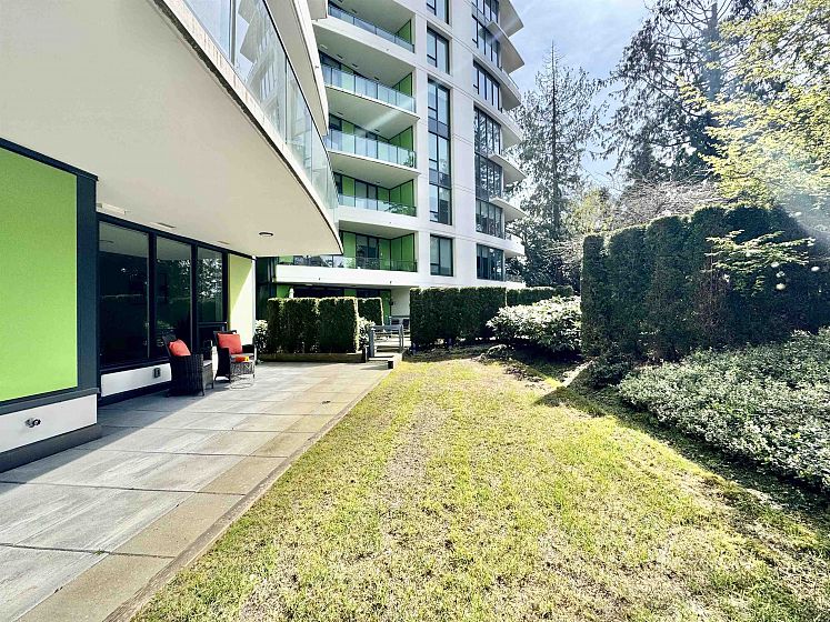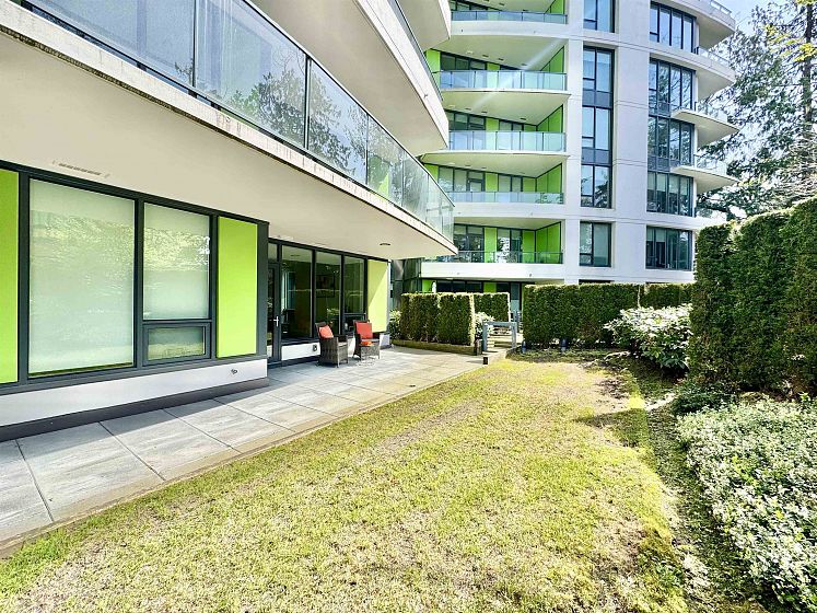 Rare opportunity with expansive private outdoor space. Step directly from the living area onto a spacious enclosed patio that opens to your own private lawn, perfect for indoor-outdoor living. This concrete, bright southwest-facing corner 1-bedroom, 1-bath home by Polygon features a highly efficient, open-concept layout with no wasted space. Enjoy premium appliances, air conditioning, and abundant natural light throughout. Ideally located in the heart of Wesbrook Village, just steps to everyday conveniences and top-ranked elementary and secondary schools, within a vibrant academic community. Perfect for both end users and investors.