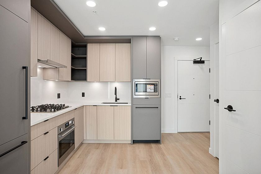 INCREDIBLE VALUE...BRIGHT & EFFICIENTLY DESIGNED 1 BEDROOM + DEN, GROUND LEVEL HOME OFFERING 535 SQ FT OF LIVING PLUS A 128 SQ FT OVERSIZED PATIO ON THE QUIET SIDE OF THE BUILDING! Modern L-shaped kitchen features integrated Fulgor appliances flowing into a bright, open living area ideal for relaxing or entertaining. Versatile den is perfect for a home office or extra storage. Just steps to Trout Lake & minutes from the shops, cafés & restaurants of Commercial Drive. Easy access to Commercial/Broadway skytrain station, transit & daily conveniences. Enjoy shared amenities including a community room, rooftop garden, playground & outdoor recreation space. A fantastic opportunity in a central, walkable location! 1 PARKING & 1 LOCKER.