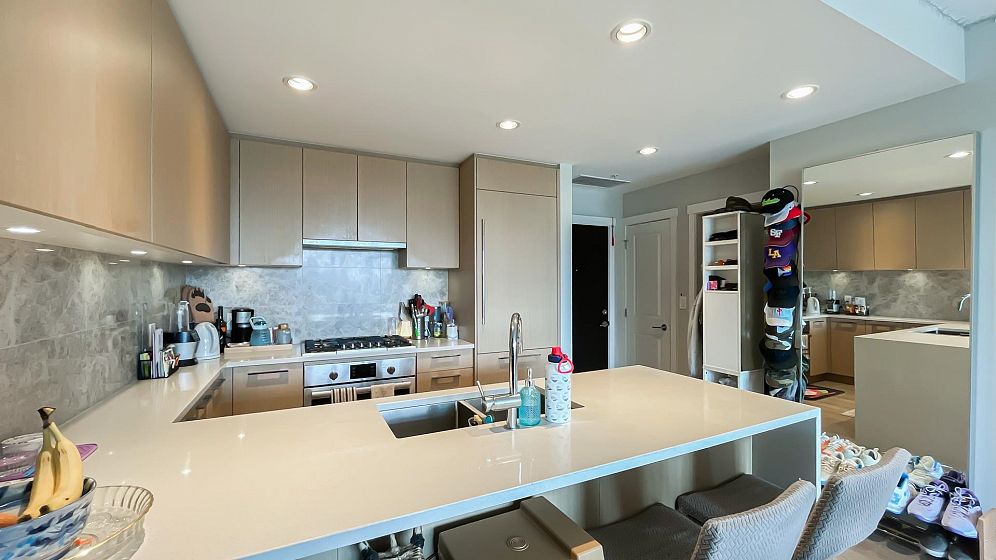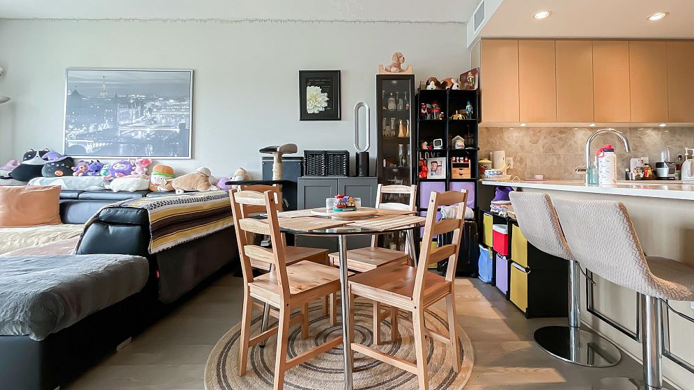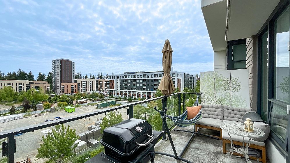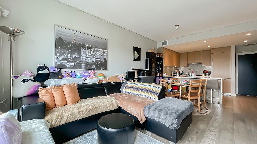 TOP FLOOR south facing unit at Eton located in the vibrant UBC university campus and built by award winning developer Polygon. One bedroom + den with functional layout. Bright and spacious living and dinning area. Open concept kitchen with Bosch appliances and gas stove. The unit features air-conditioning, 9' ceilings, laminate flooring in living/dinning area, good sized den, and southern exposure balcony with campus view. Walking distance to campus, U-Hill secondary and Norma Rose Point elementary. Steps to shopping, transit, campus amenities and the trails of park. Come and see!