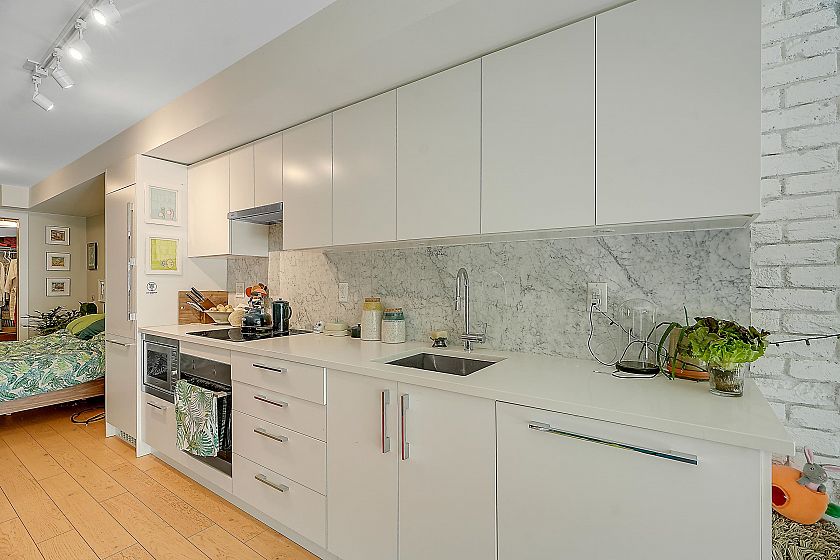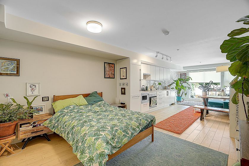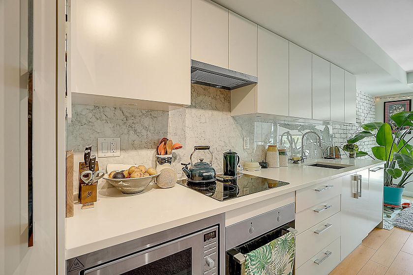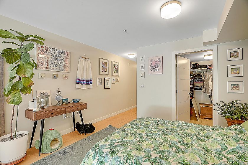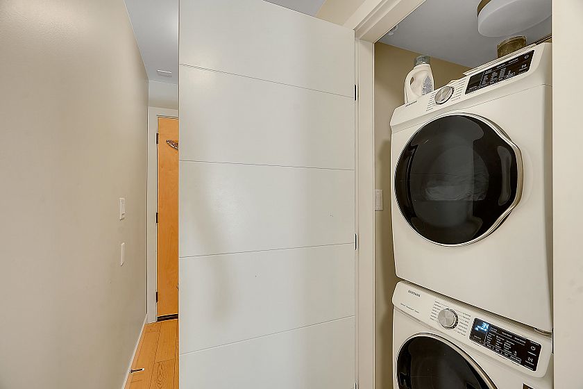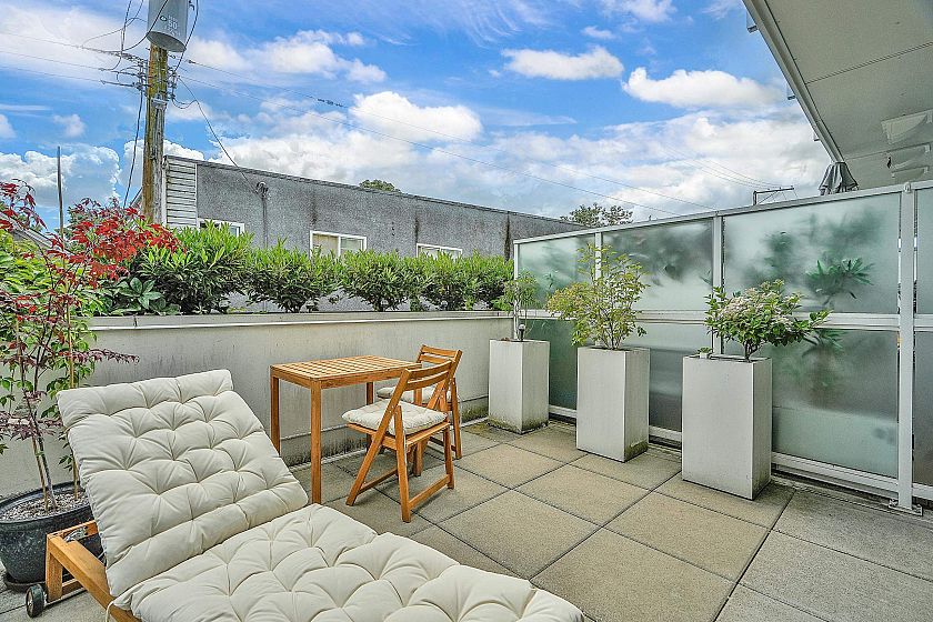 Welcome to Midtown Central by the Peterson Group/PortLiving (Studio Living). This boutique 33-unit building is perfectly located along the Broadway Corridor & Fraser Street. Situated on the quiet side of the complex features a spacious 208 sq ft patio, unobstructed. Enjoy high-end finishes throughout, including oak engineered hardwood floors, integrated appliances with induction cooktop, Carrera marble backsplash, and a luxurious bathroom with in-floor heated herringbone tile and a rain shower. The large walk-in closet doubles as a home office or flex space. Steps to shopping, restaurants, and the future Broadway Subway Station, this home is perfect for first-time buyers or investors looking for a move-in-ready property. Comes with parking, locker & bike locker.