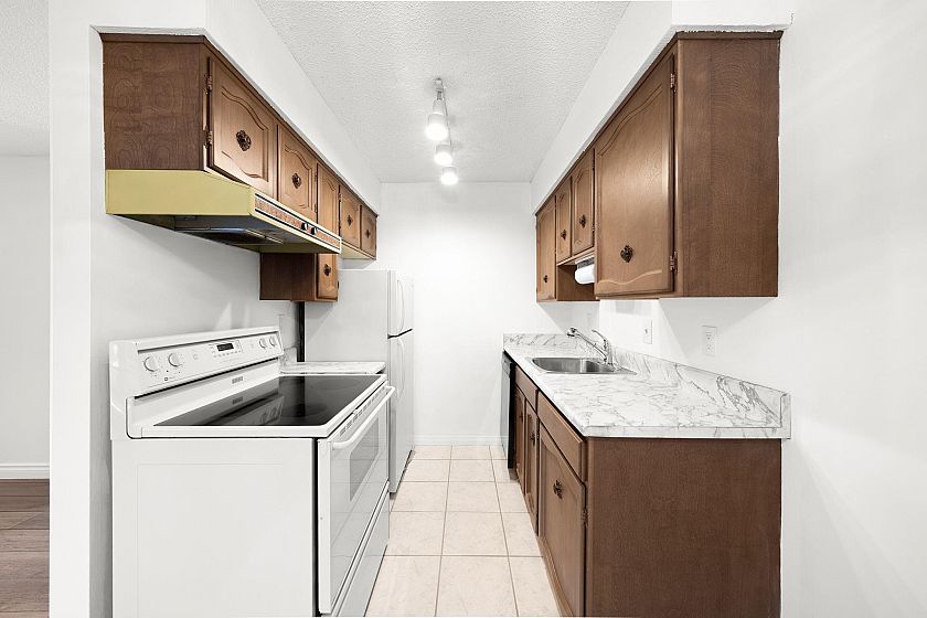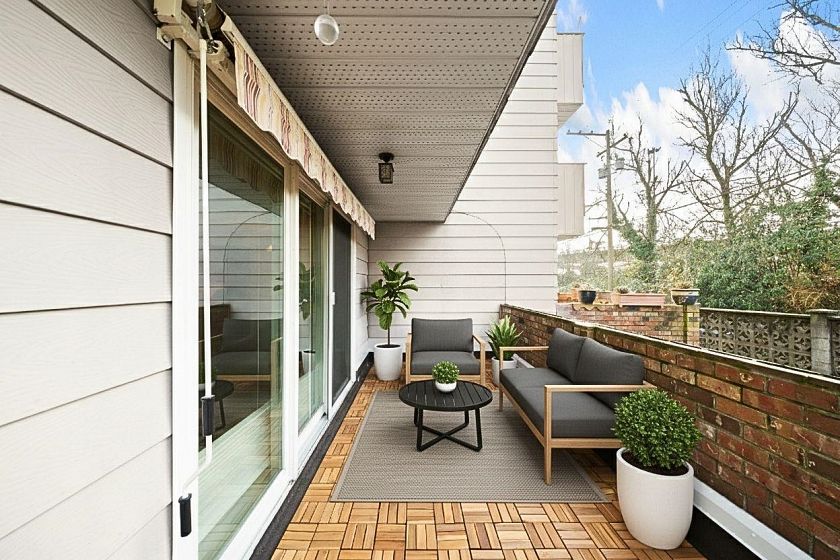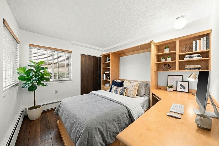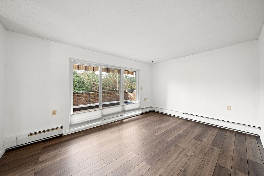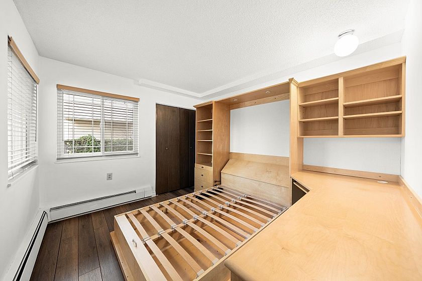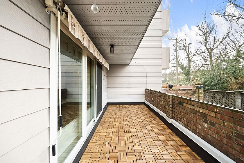 Best value for Freehold strata on Vancouver's Westside! Marpole blends peaceful residential living, lush green spaces, and handy daily conveniences. Move-in condition: fresh paint, new floors, premium Anderson windows & sliding doors. Enjoy a sunny south-facing covered patio. Generous master bedroom features a Murphy bed + desk setup. Bathroom with upgraded shower enclosure. Bonus: 1 secured parking stall + storage locker. One pet welcome, and long-term rentals permitted (per BC strata laws). Recent building upgrades include hallways, boiler, piping & roof. Low monthly fees cover heat & hot water. Don't miss this prime opportunity. Some photos are virtual staged.