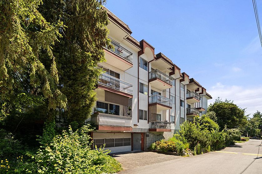 Spacious 1 bedroom suite with XL patio space! The home has been well kept and features original hardwood flooring throughout. The south facing home is bright and functional and the living room transitioning nicely onto the oversized patio, measuring out at nearly 400 sqft. Hot water baseboard heating throughout and included in your maintenance fee. The location is very convenient and a walkers paradise, an easy stroll to everything you need, including the future Harry Jerome Rec Centre.