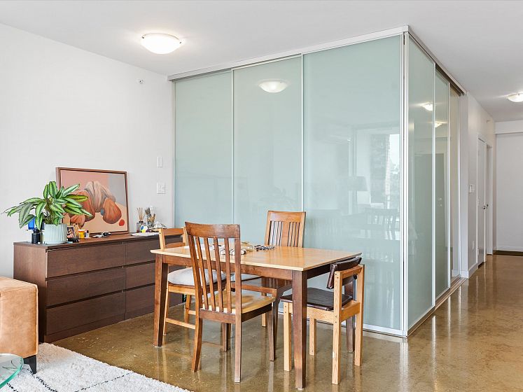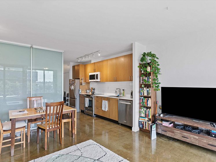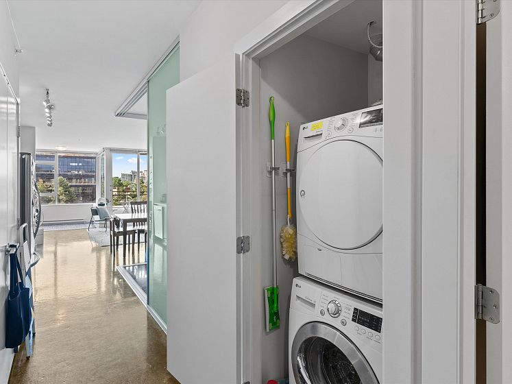 Spacious 699sqft unit with A/C on the highly desired south side of V6A in Chinatown - only $822/sqft! This modern condo features a long list of benefits - high floor with excellent privacy, flexible floor plan w large spaces, great storage including 2 hall closets, private covered balcony, expansive & bright south facing view, heat pump (!!!), spacious bathroom, 1 secured parking & large storage locker. Polished concrete floors & over height ceilings give this unit a cool, modern feel. All in a solid, well maintained concrete building with concierge and gym. Pets + rentals allowed. Super central location - you're a short walk to the best of Chinatown, False Creek & the Seawall, Olympic Village & Yaletown with a bike route outside & the Skytrain nearby. Showing by appt - reach out to view!